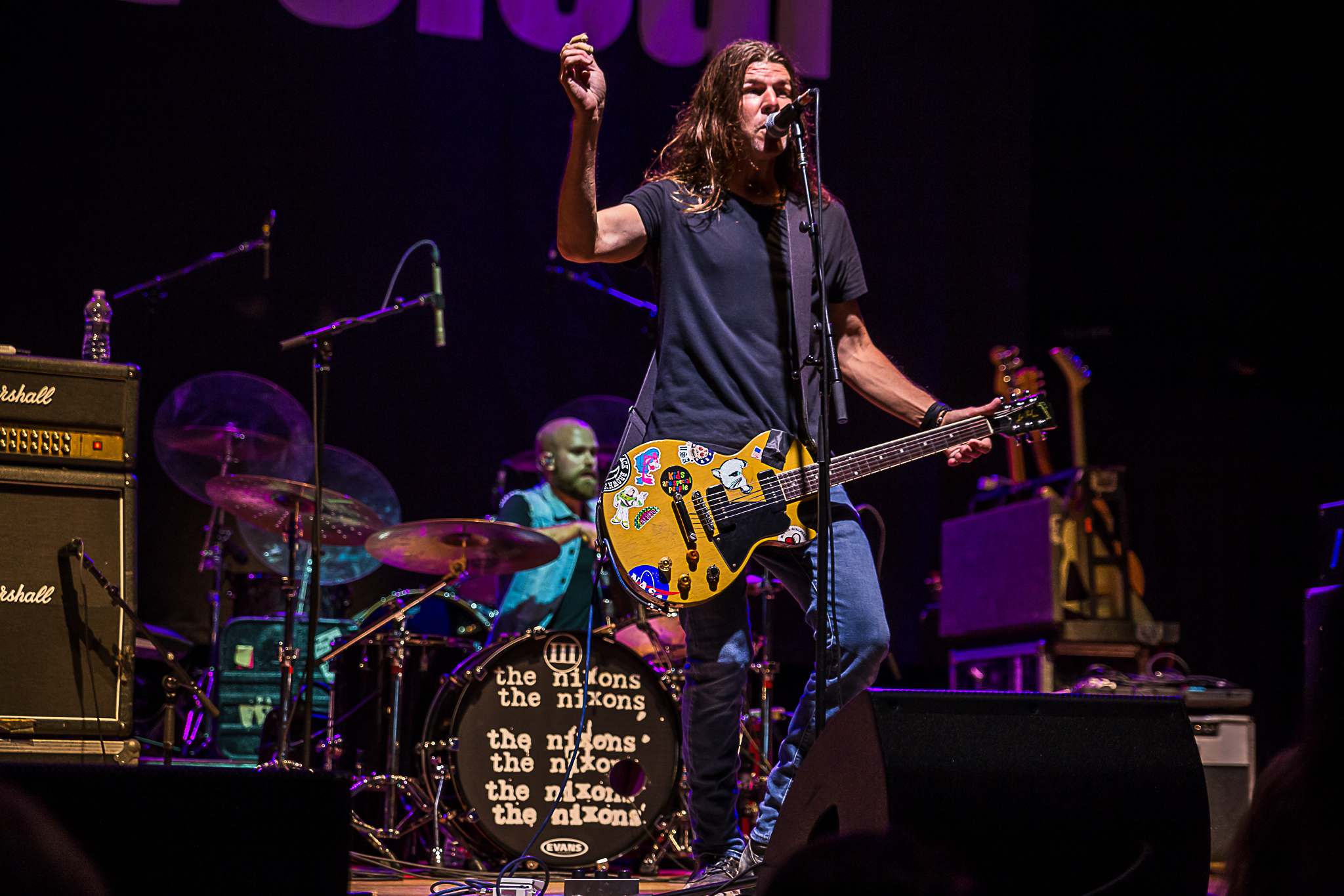 The Nixons opened the show and for most 90’s music fans they will remember their big songs “Wire” and “Sister” from their album Foma. If the song titles don’t ring a bell the music would along with their iconic album cover. The Nixons quielty disbanded in 2000 and it wasn’t until around 2017 that they reformed and started putting out music again. As an opener on this tour and being away for more than 17 years, The Nixons definately showed the crowd they are back and better than ever. With a stage presence from Zac Maloy jumping around, engaging with the fans, and performing on his back, The Nixons gave it their all even with two members being fill ins. Drummer John Humphrey was on tour with Seether to which his son was the drummer for this tour and guitarist Jesse Davis had a family matter to attend to and their guitar tech Alex Schneider was filling in. Towards the end of their set, they played their great cover of Elton John’s “Rocketman” which is featured on their Scrapbook EP, except this version featured Zac adding in the lyrics to “Times Like These” by Foo Fighters. There is definitely new life in The Nixons and with a new EP out I’d expect more to come.
