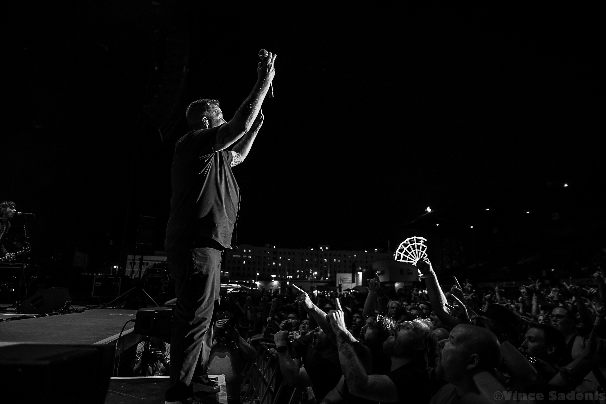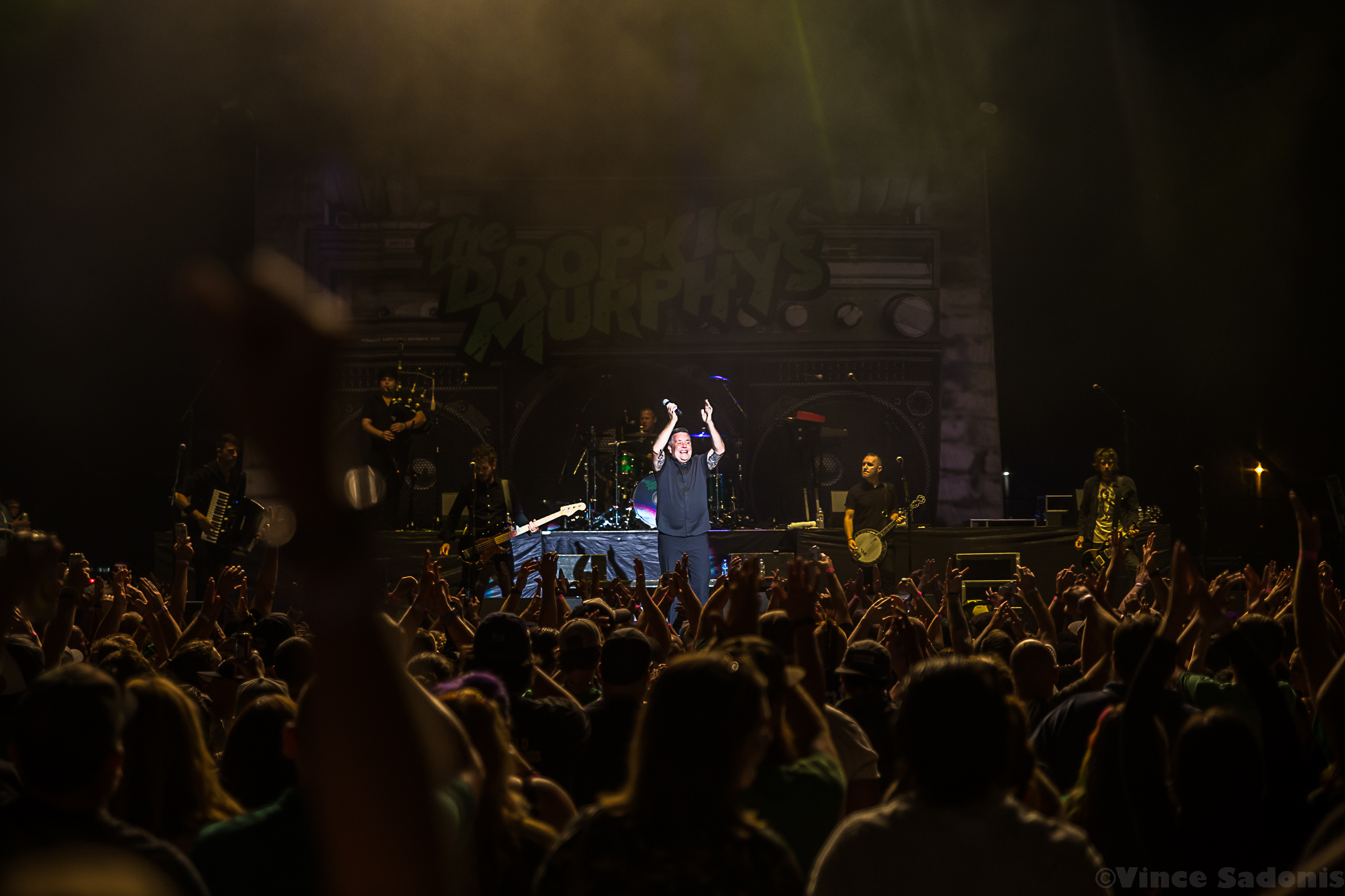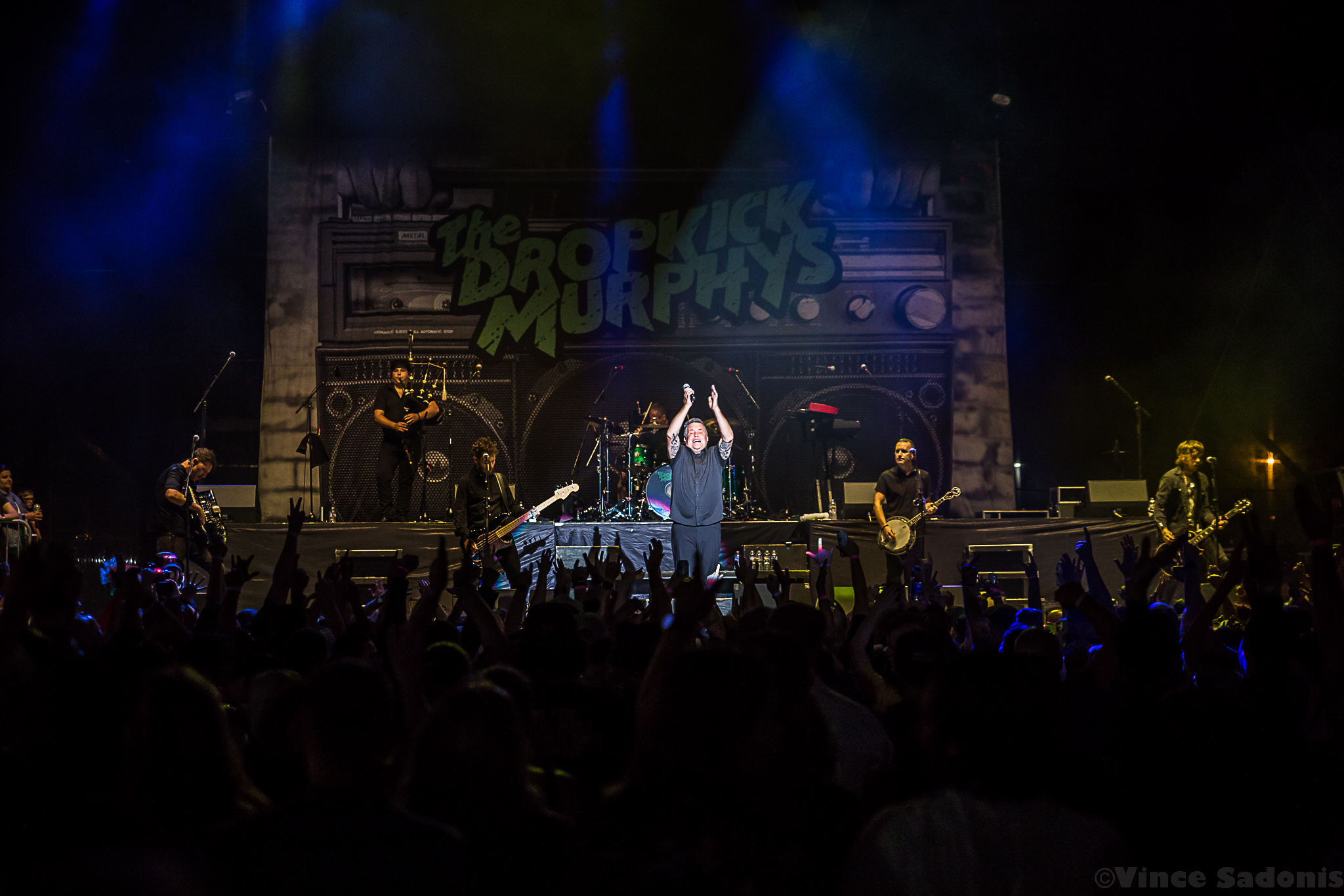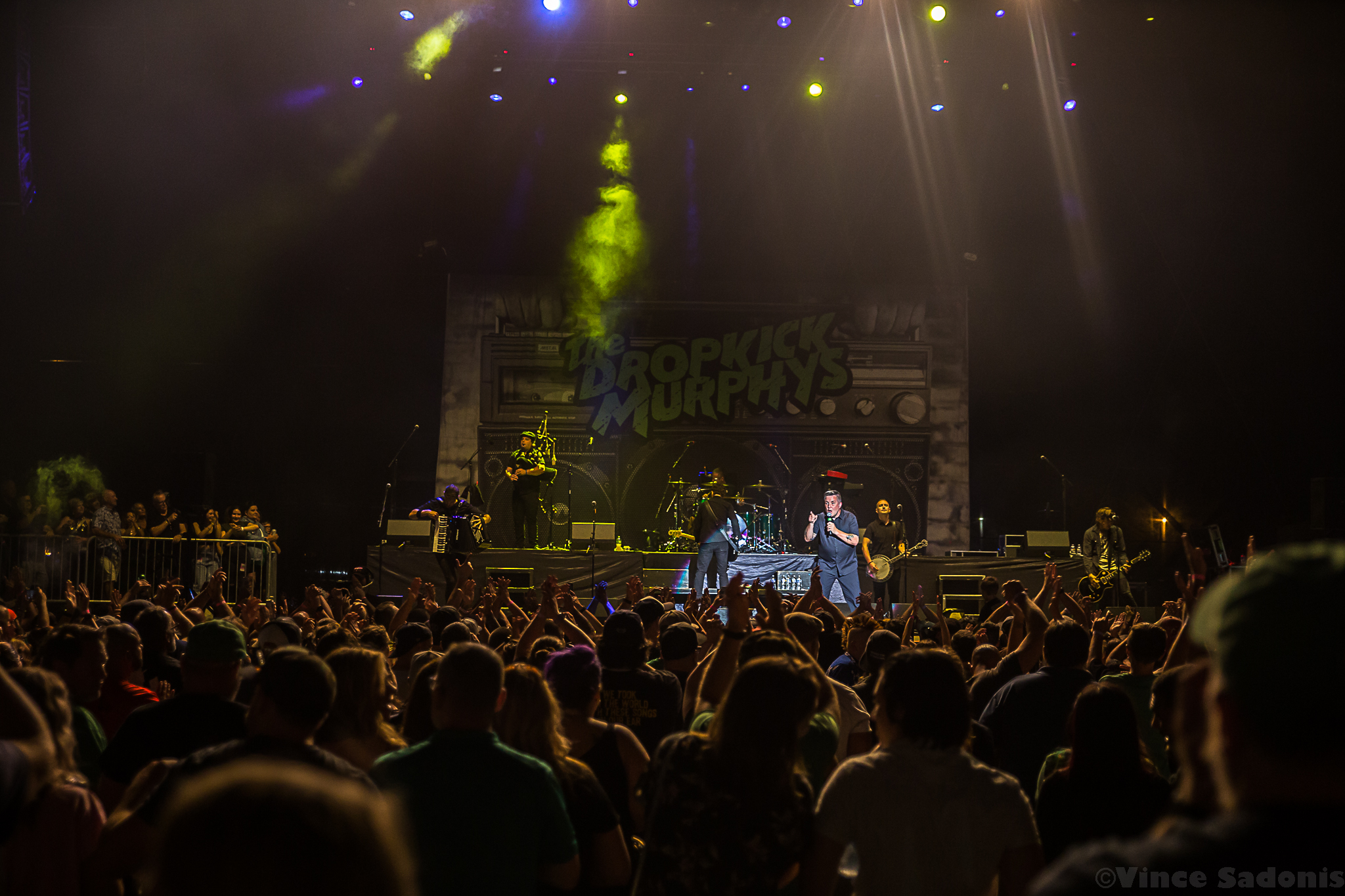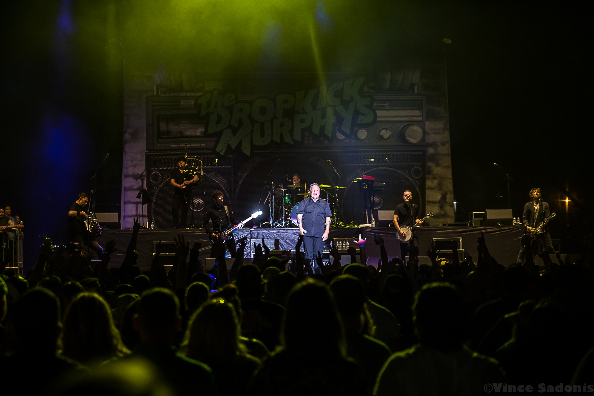 As the sun disappeared and the night took its place, the Dropkick Murphys exploded onto to the stage with “Cadence To Arms”. However, when they played the “The Boys Are Back”, it was like the crowd increased their energy 100% more, which only makes sense since the last time Dropkick Murphys played Allentown was in 2007 at now demolished Crocodile Rock. The Allentown crowd has been waiting for the boys from Boston to come back, but before they played their cover of “We Shall Overcome” originally by Pete Seegar, Ken Casey took two minutes to speak his mind. What he said would eventually become viral, but what isn’t shown is prior to his speech Ken asked a fan in the crowd to take off his shirt in order for him to give him a Dropkick Murphy’s shirt. What was on the shirt was never said, but based off Ken’s speech about how they support the police and military, but not the “Greatest Swindler in History”, it can only be assumed what was printed on the shirt. The amount of times I’ve seen Dropkick Murphys, I’ve never seen this energy come out of the band, but Casey drove home the fact, while pacing back and forth, that this band is a blue collar band that had Irish family migrate to America to make a life here. The pride and integrity Ken showed is something that has been missing at concerts, and hopefully the crowd took note of this. After the speech, the Dropkick Murphys played two songs from their upcoming album This Machine Still Kills Fascists, out September 30, which the title is an ode to Woody Guthrie. The songs are more acoustic based, but they still bring the spirit like all their other songs. Casey explained since they are down one member, Al Barr is taking care of a family member, they wanted to try something different on this new album. For the rest of the show Dropkick Murphys kept the enthusiasm going including Ken trying on different objects from the crowd from party hats to bright green glasses. Ending their set was the always beautiful and hardship take “Rose Tattoo”. Then for an encore they played their biggest songs “I’m Shipping Up to Boston” and “Kiss Me, I’m Shitfaced”, two songs that no matter how late the show ends, the crowd will muster up enough power to give it all they got. Allentown proved in Ken Casey’s words, “you are the best crowd that we ever played to…at a county fair.”