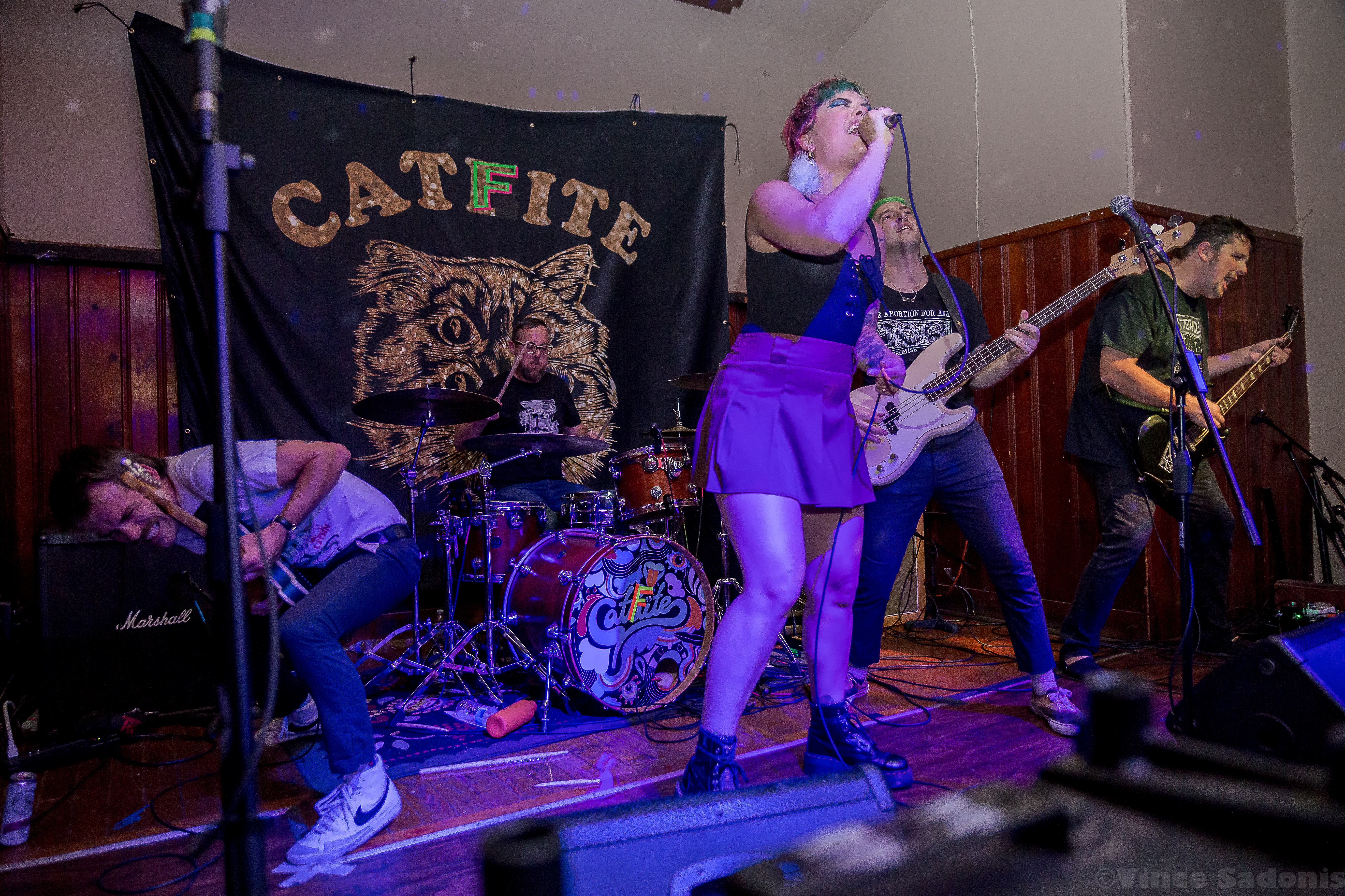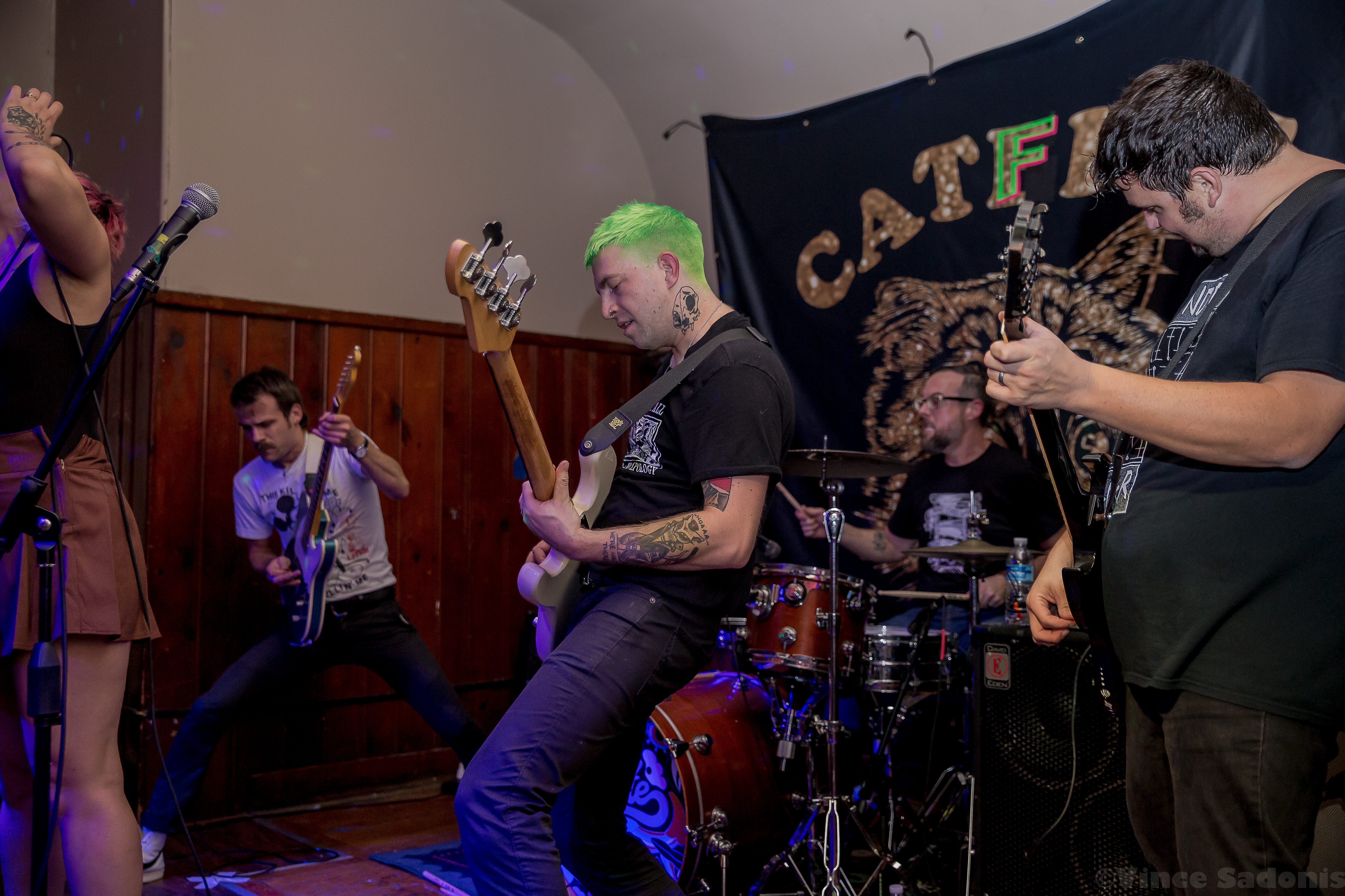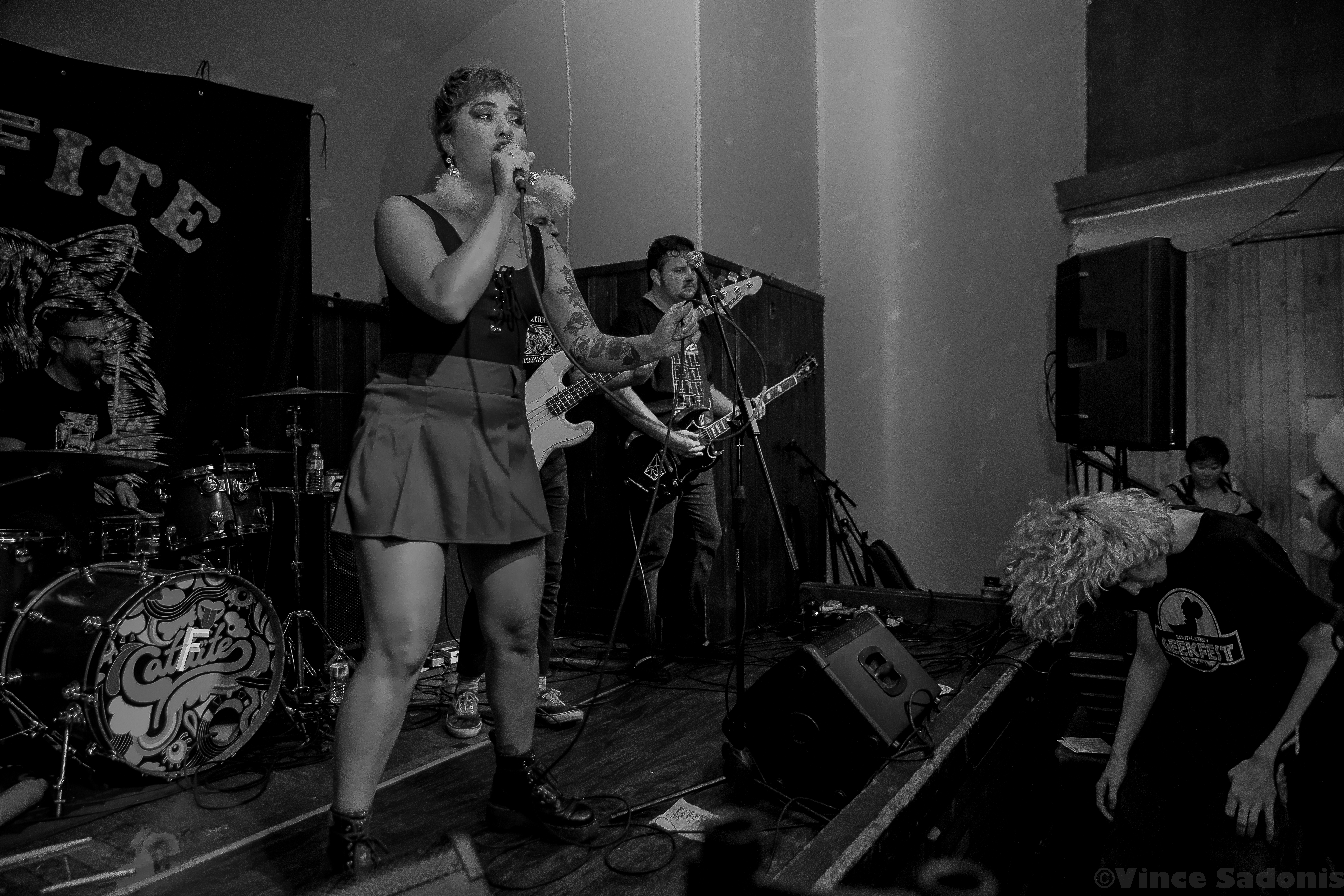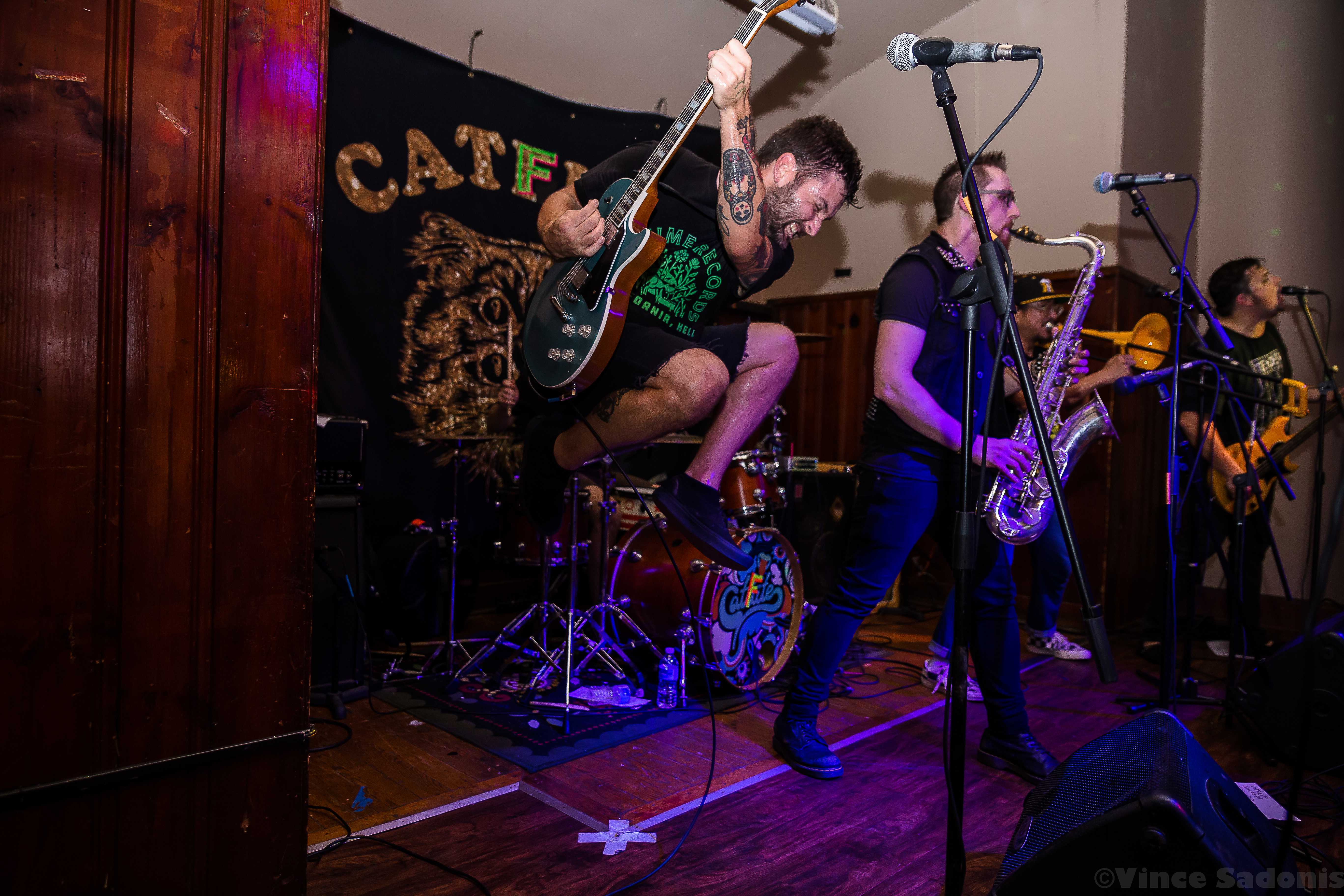 Kill Lincoln continued the nonstop energy throughout their set where singer and guitarist Mike Sosinski can be seen jumping constantly, hype man Drew Skibitsky is in the crowd rallying everyone, and trombone player Ume eventually is crowd surfing back to the stage. Kill Lincoln has always brought this energy everytime I see them and I hope they never stop. For Catfite’s first performance, they put on a true hardcore show. Unlike a Catbite show, there was plenty of moshing, fists in the air, and very gruff sing alongs. Catfite was able to play their whole rendition of Catbite along with a few surprising Nice One hardcore renditions. The performance clocked in in about 30 minutes, and it was as great as seeing a band at Philly’s This Is Hardcore festival. Which makes one wonder, would Catfite ever perform after these shows? What if This Is Hardcore wants to book them? Better yet will we get a Catlite performance sometime? I guess we just have to wait and see, but until then, we can always catch Catbite on tour playing these songs the original way.