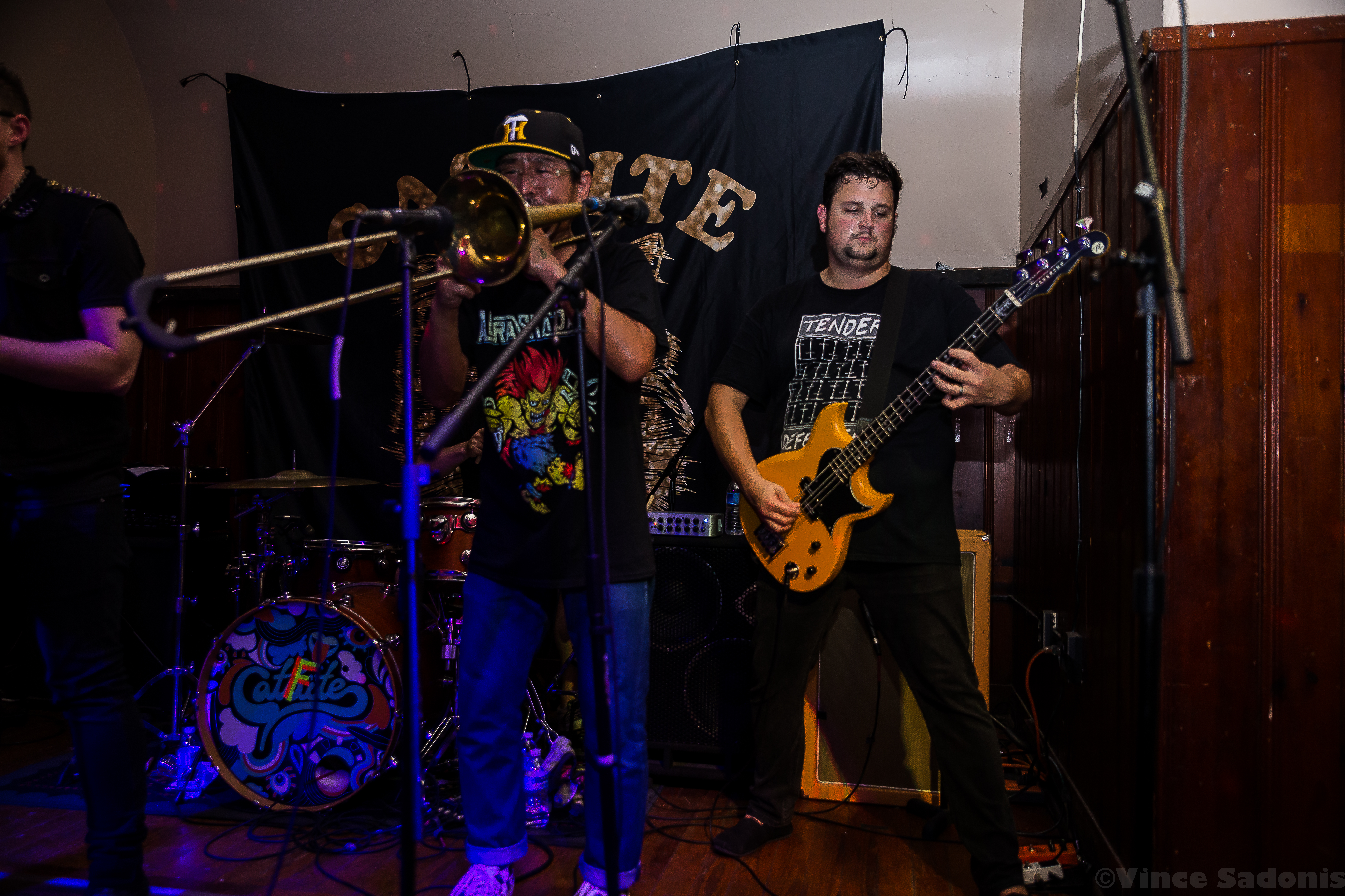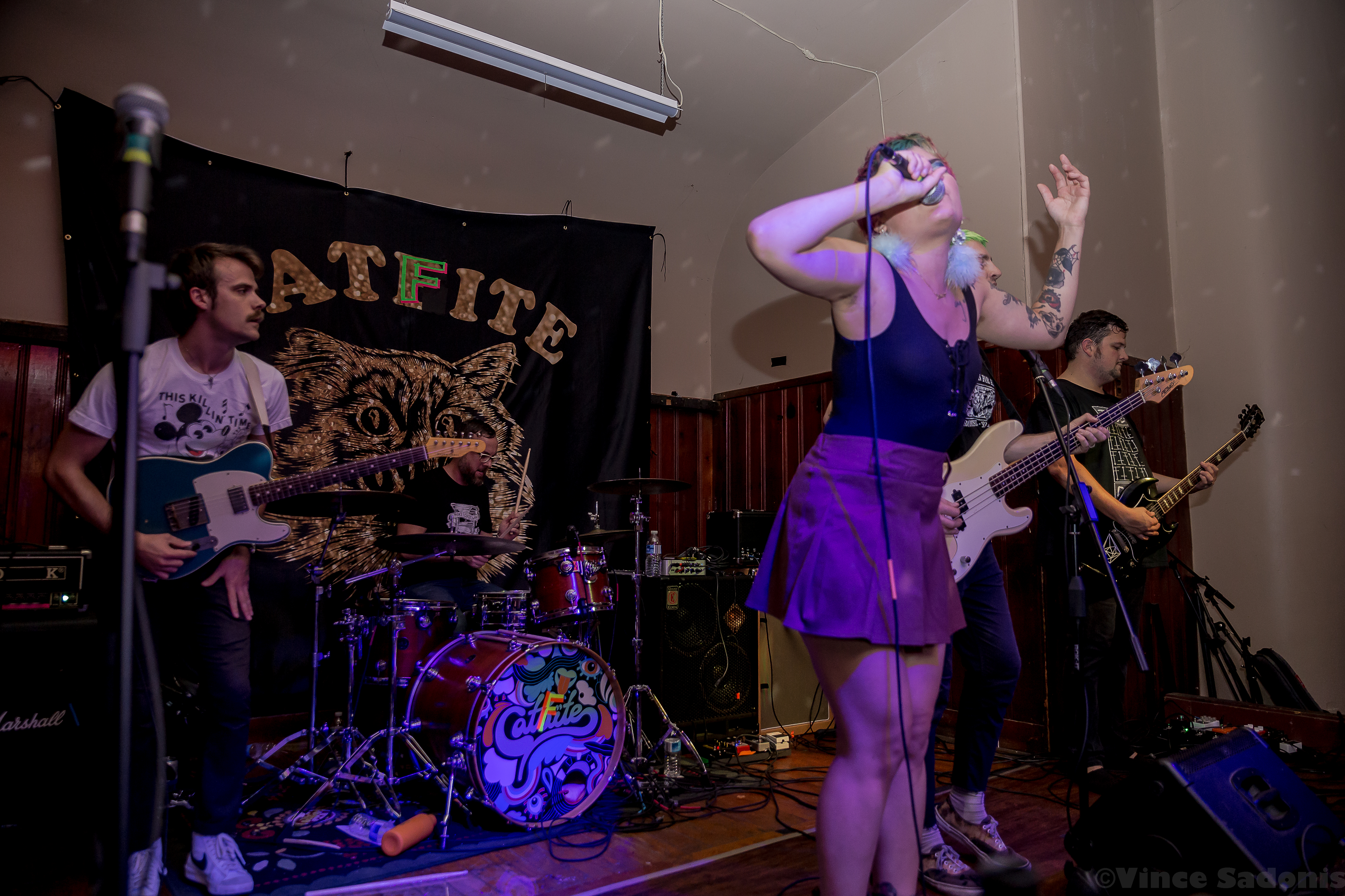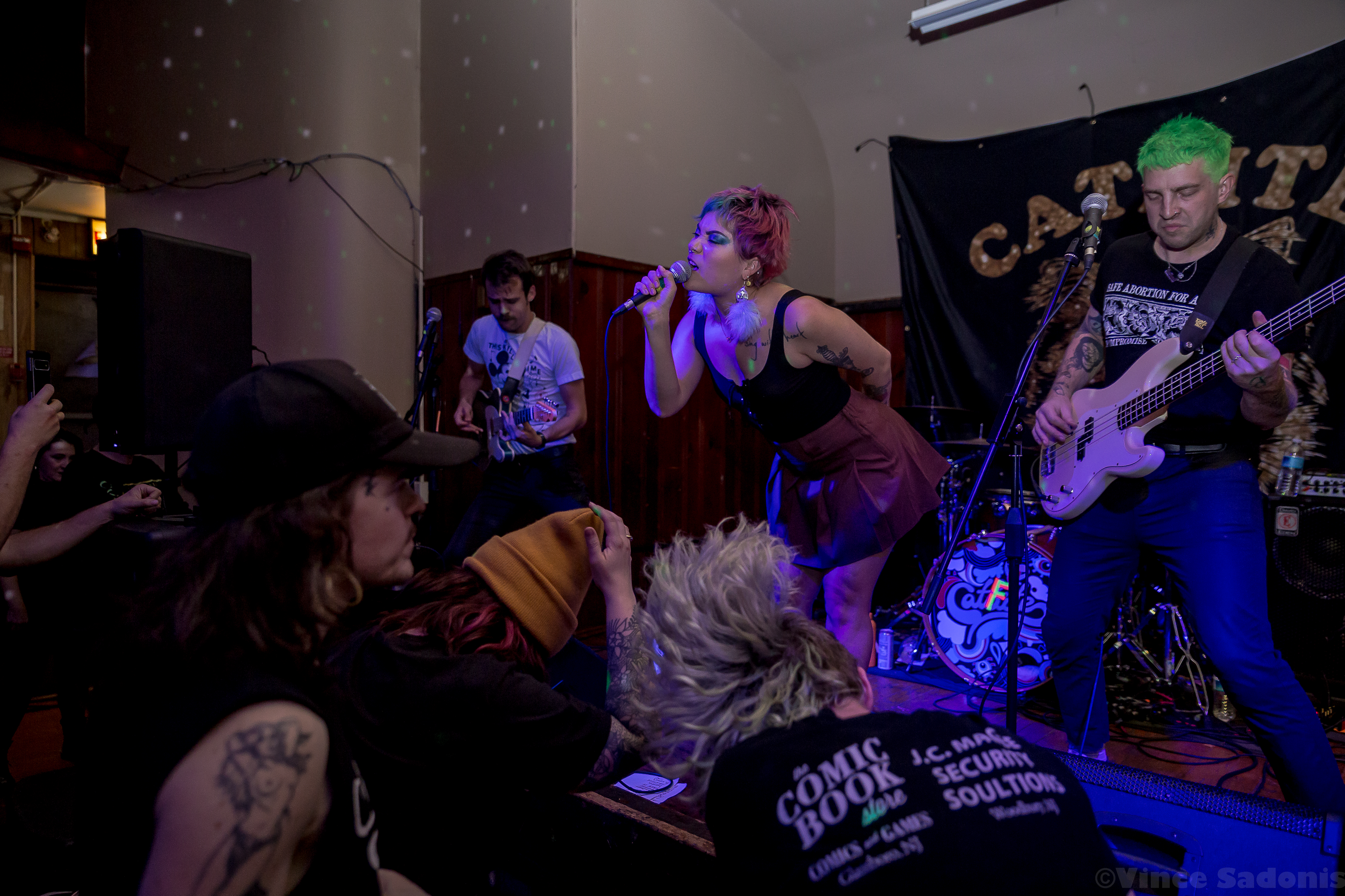 Kill Lincoln continued the nonstop energy throughout their set where singer and guitarist Mike Sosinski can be seen jumping constantly, hype man Drew Skibitsky is in the crowd rallying everyone, and trombone player Ume eventually is crowd surfing back to the stage. Kill Lincoln has always brought this energy everytime I see them and I hope they never stop. For Catfite’s first performance, they put on a true hardcore show. Unlike a Catbite show, there was plenty of moshing, fists in the air, and very gruff sing alongs. Catfite was able to play their whole rendition of Catbite along with a few surprising Nice One hardcore renditions. The performance clocked in in about 30 minutes, and it was as great as seeing a band at Philly’s This Is Hardcore festival. Which makes one wonder, would Catfite ever perform after these shows? What if This Is Hardcore wants to book them? Better yet will we get a Catlite performance sometime? I guess we just have to wait and see, but until then, we can always catch Catbite on tour playing these songs the original way.