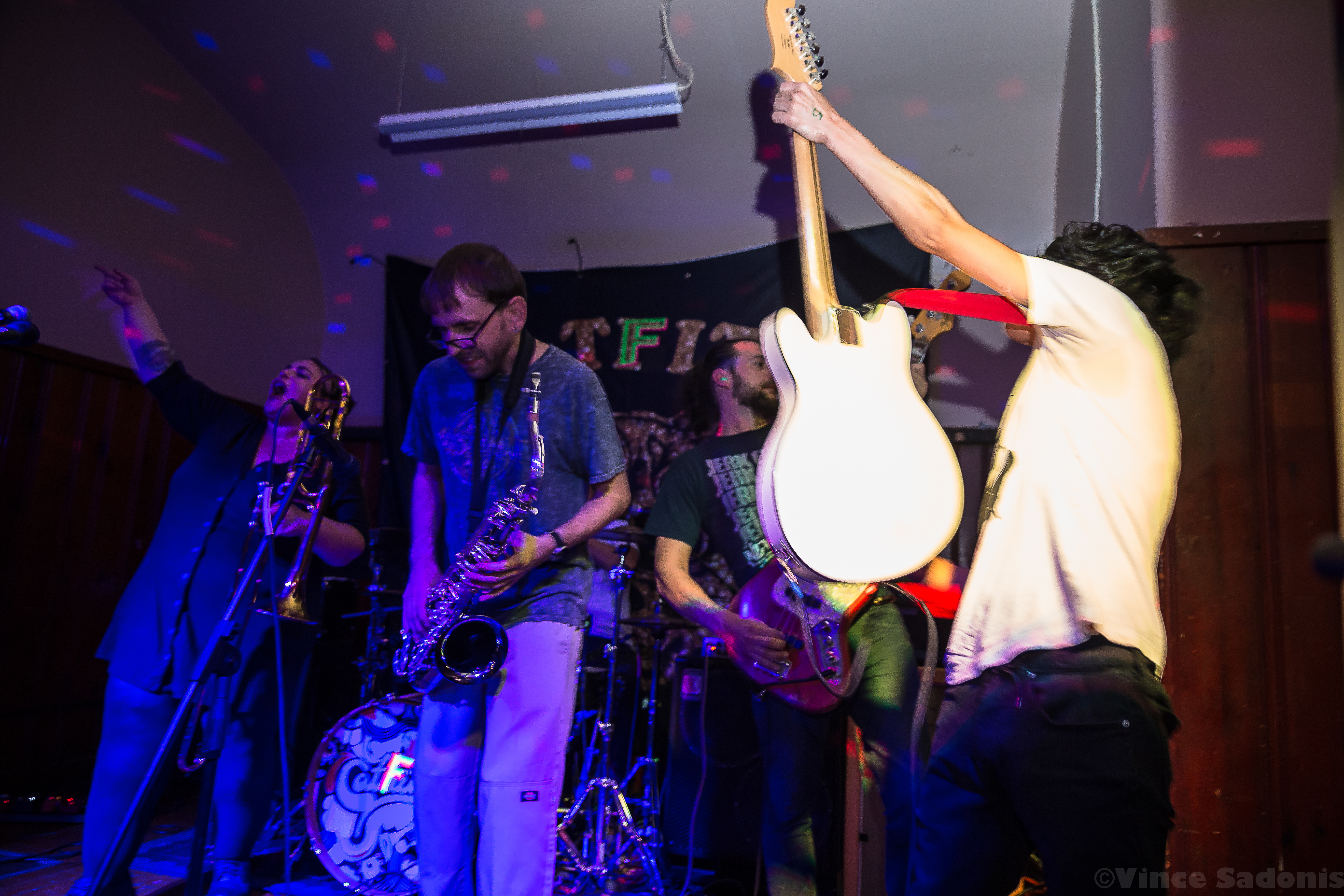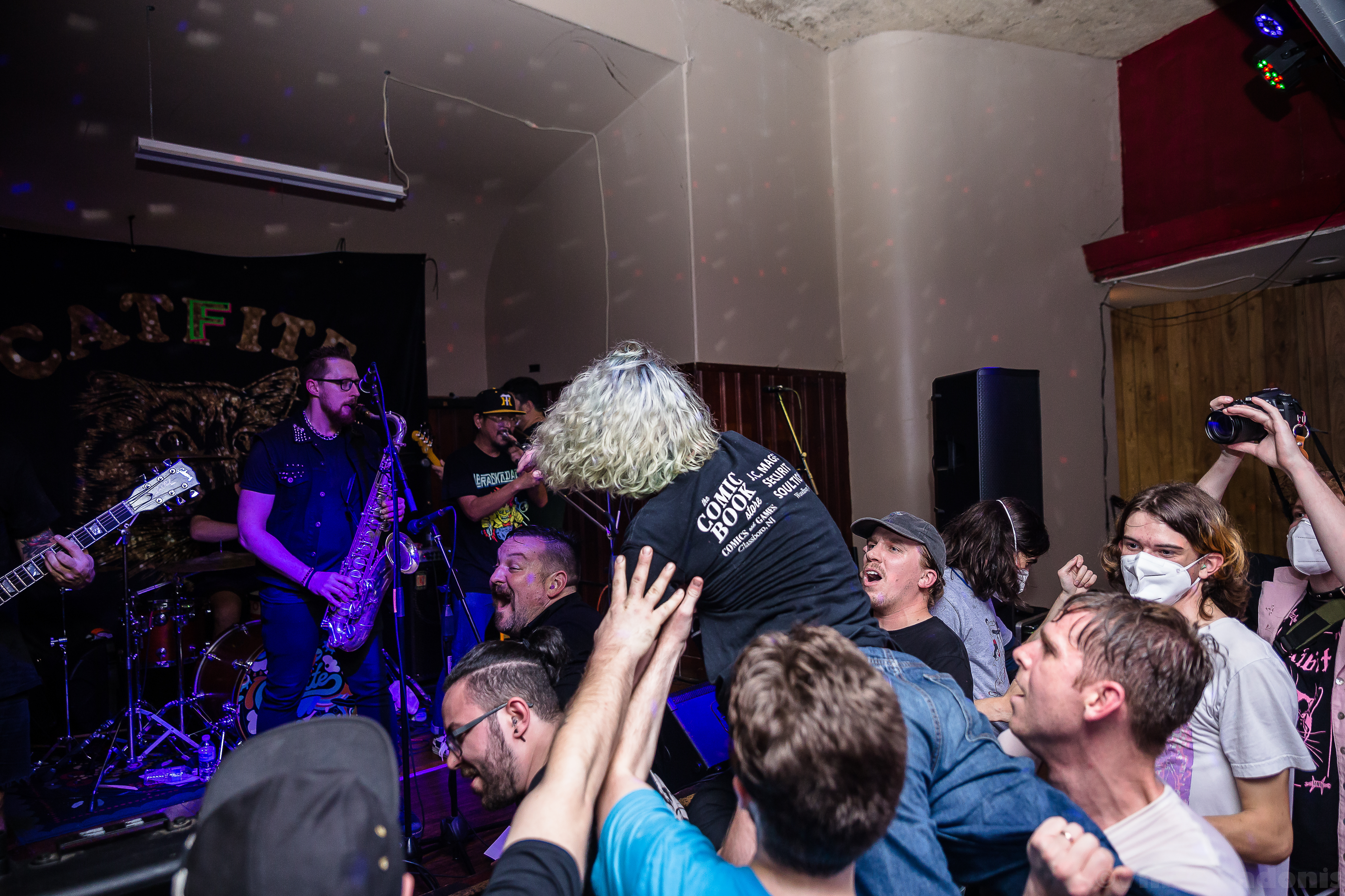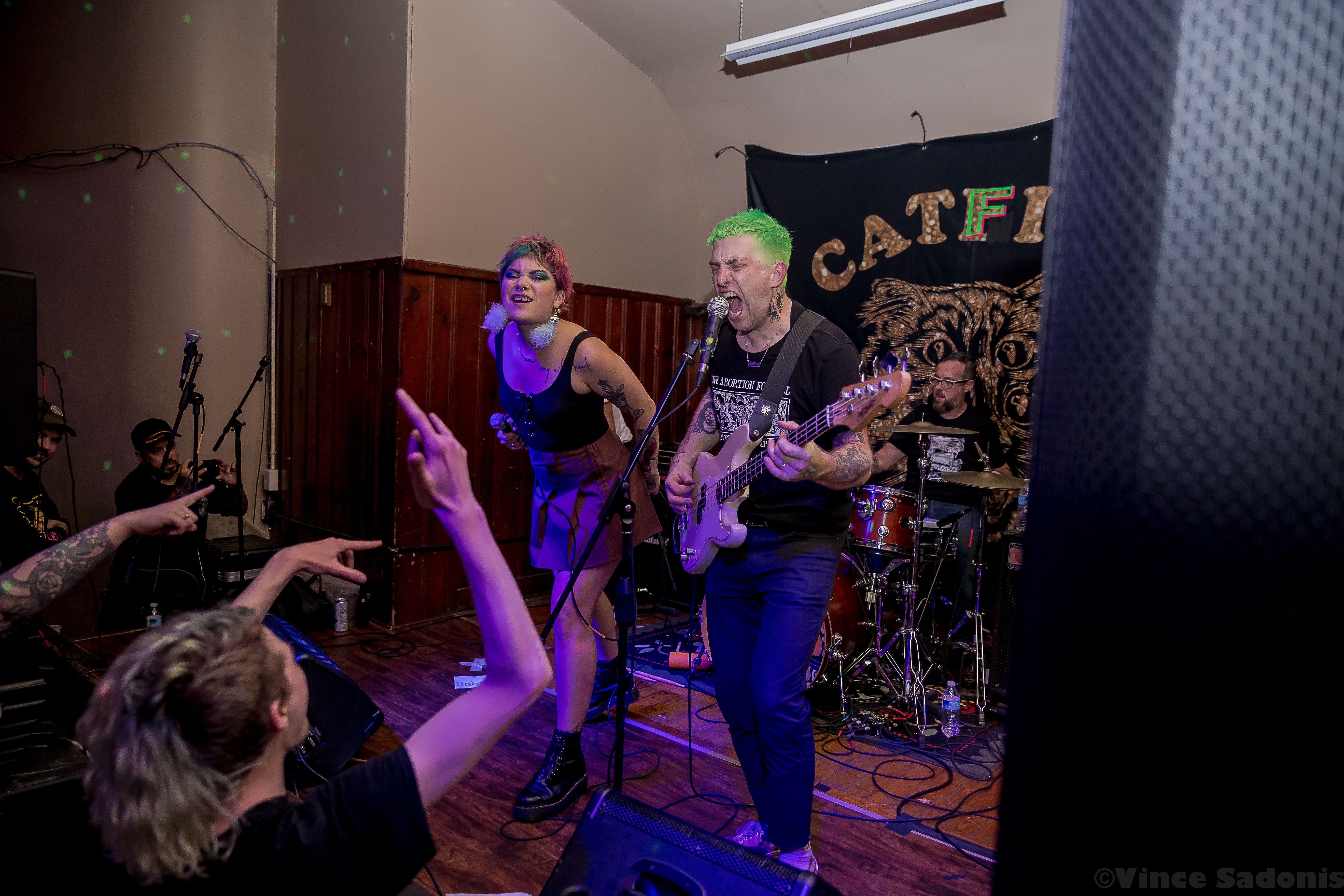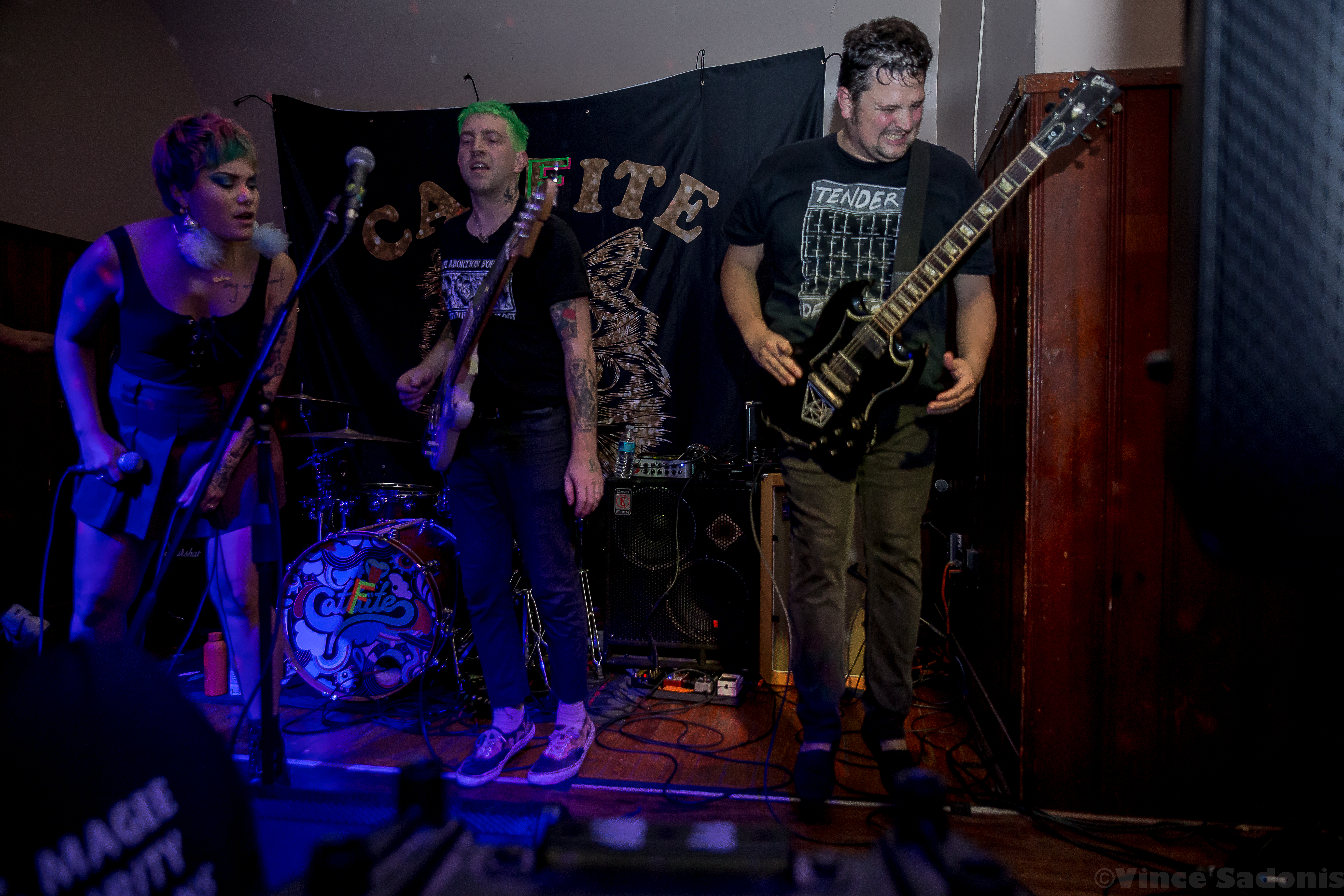 Kill Lincoln continued the nonstop energy throughout their set where singer and guitarist Mike Sosinski can be seen jumping constantly, hype man Drew Skibitsky is in the crowd rallying everyone, and trombone player Ume eventually is crowd surfing back to the stage. Kill Lincoln has always brought this energy everytime I see them and I hope they never stop. For Catfite’s first performance, they put on a true hardcore show. Unlike a Catbite show, there was plenty of moshing, fists in the air, and very gruff sing alongs. Catfite was able to play their whole rendition of Catbite along with a few surprising Nice One hardcore renditions. The performance clocked in in about 30 minutes, and it was as great as seeing a band at Philly’s This Is Hardcore festival. Which makes one wonder, would Catfite ever perform after these shows? What if This Is Hardcore wants to book them? Better yet will we get a Catlite performance sometime? I guess we just have to wait and see, but until then, we can always catch Catbite on tour playing these songs the original way.
