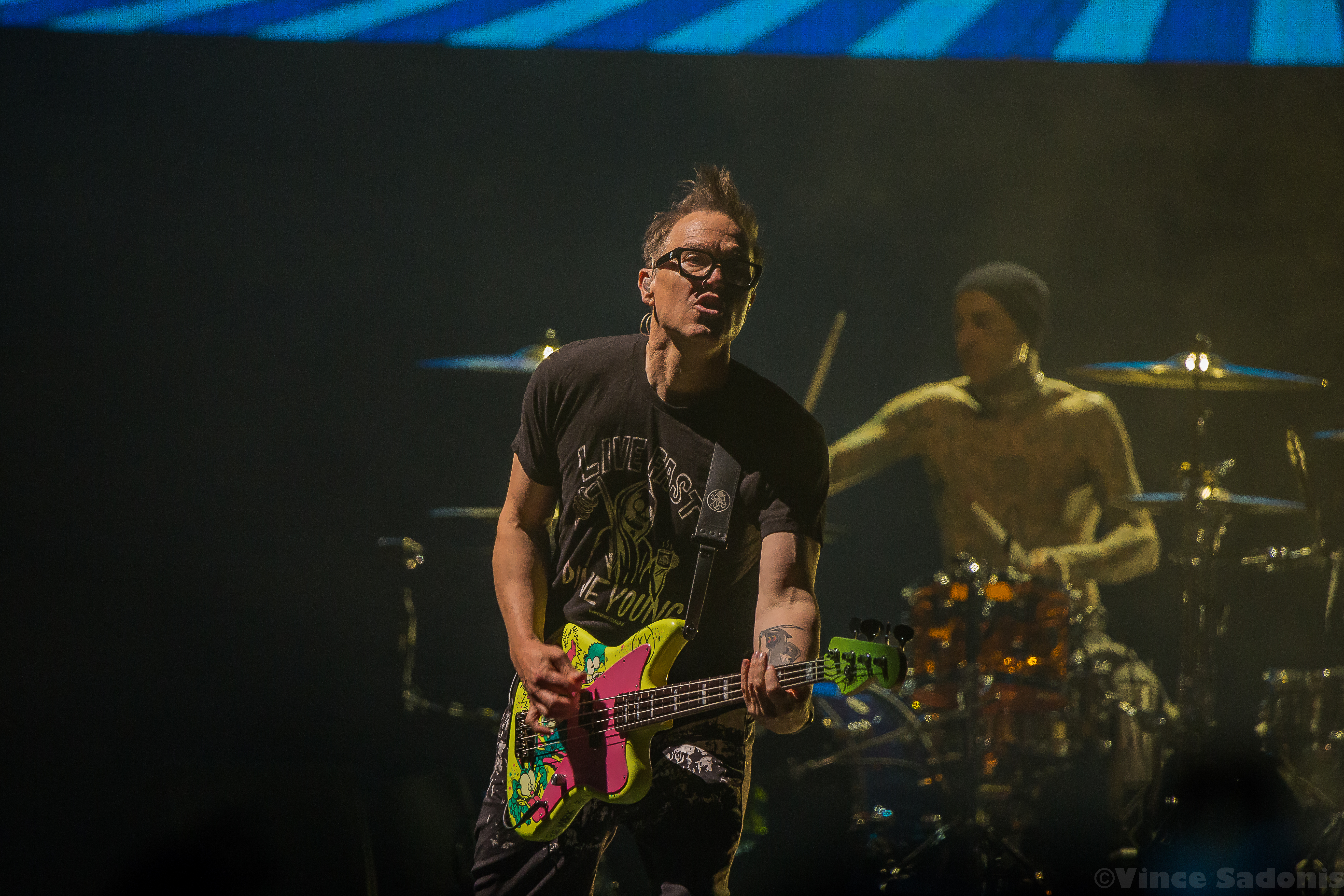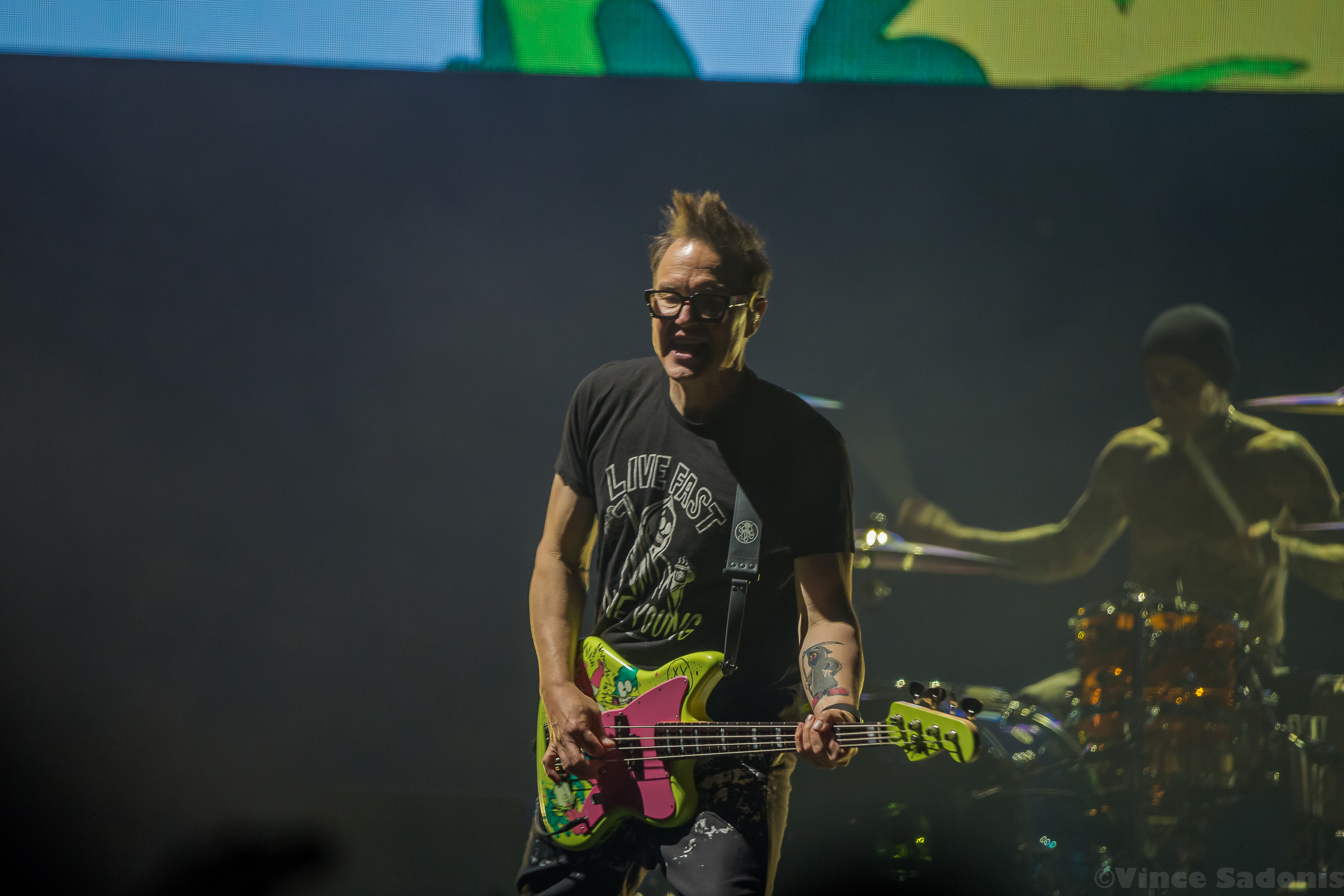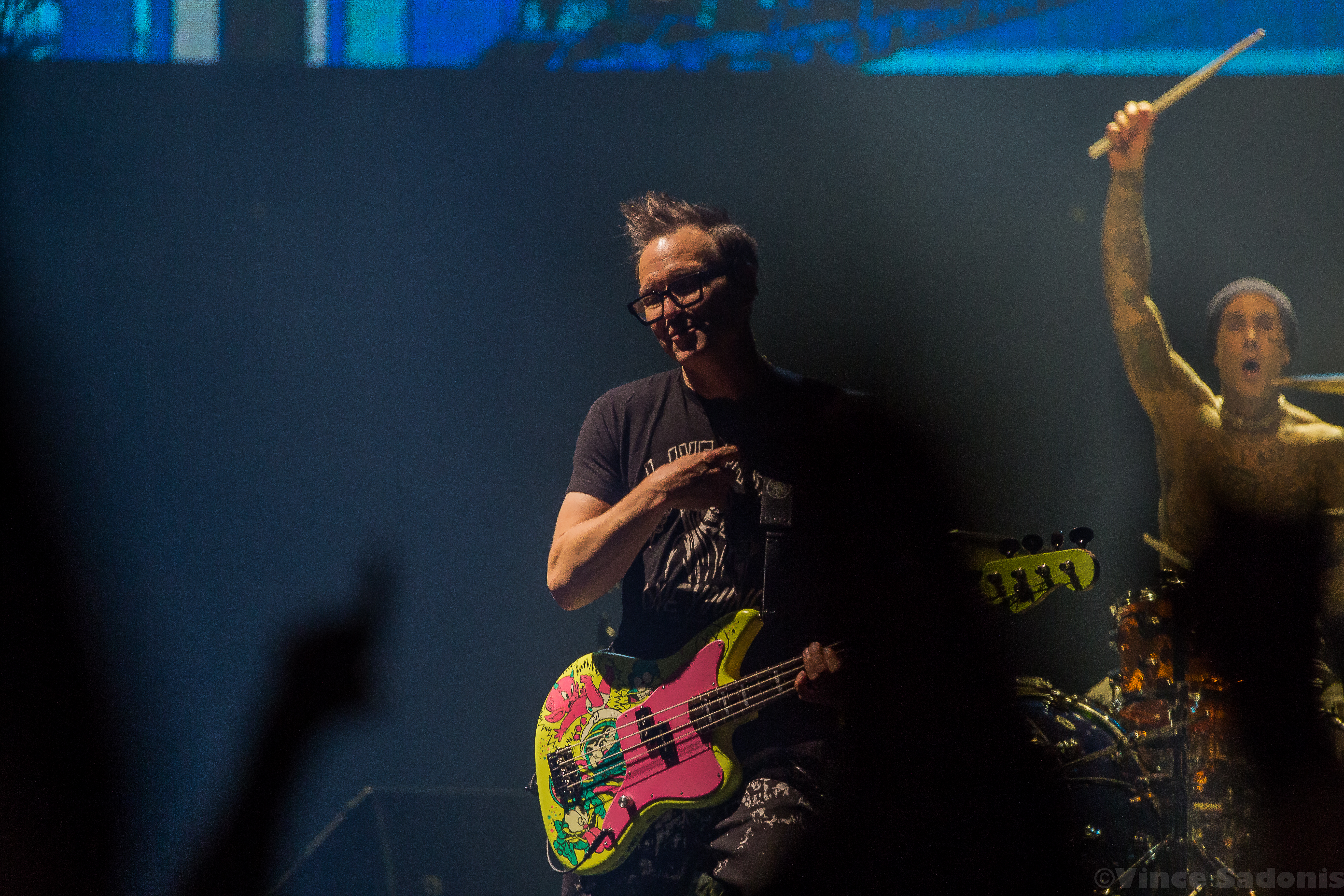 Throughout their set they played all their major hits including their latest single “Edging”, but it was very interesting to hear “Cynical” and “Bored To Death”. These songs were released during the Skiba era and hearing Tom take over his parts fit perfectly. When Skiba originally joined, I remember Mark saying in an interview that they wanted someone that can hit Tom’s notes naturally. Skiba was their first choice and boy were they right to choose him. Hearing the California songs with Tom singing was a duh they really do sing the same way. I didn’t realize it then, but hearing both now, it was a no brainer that Skiba was a perfect replacement.