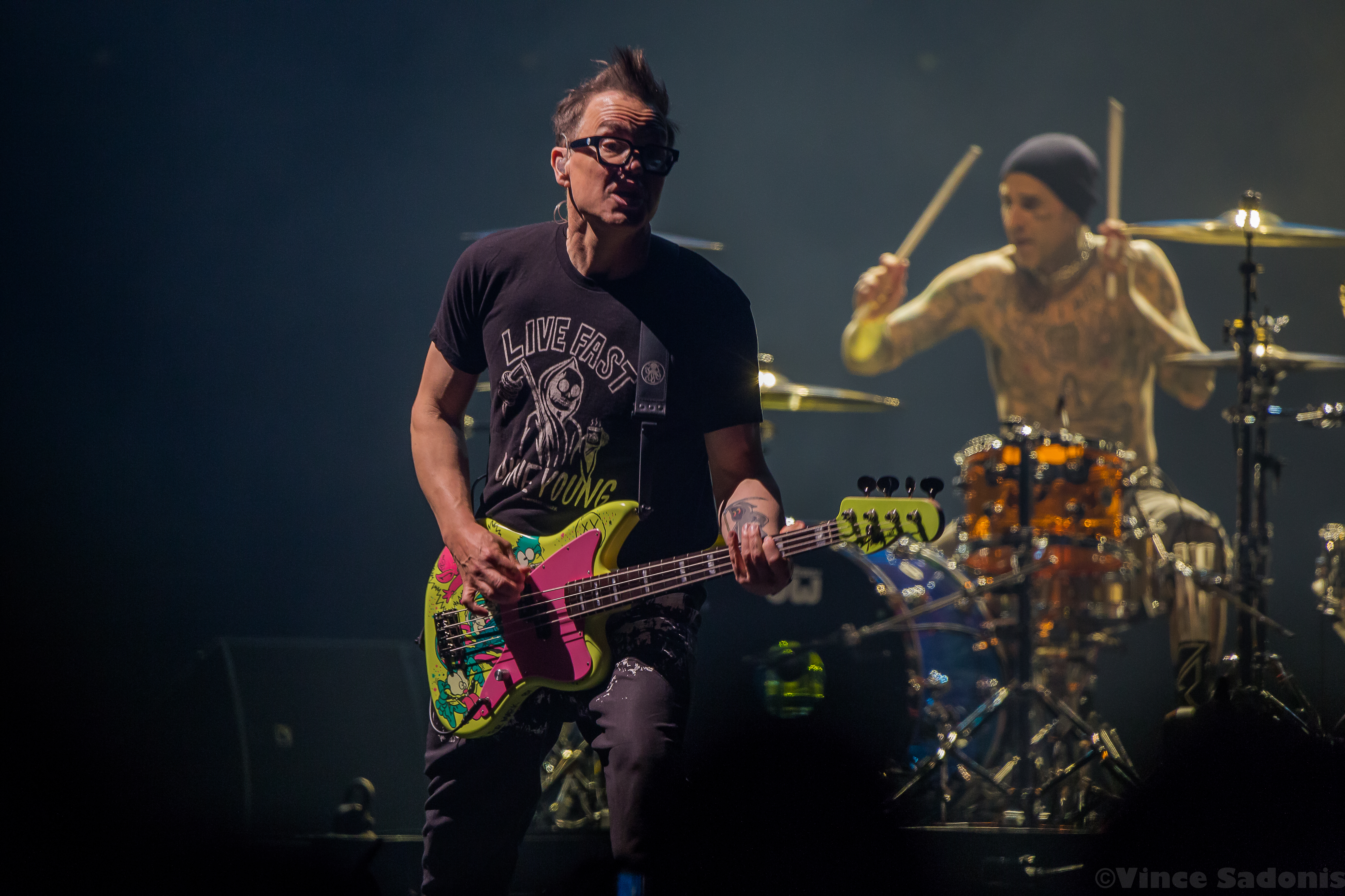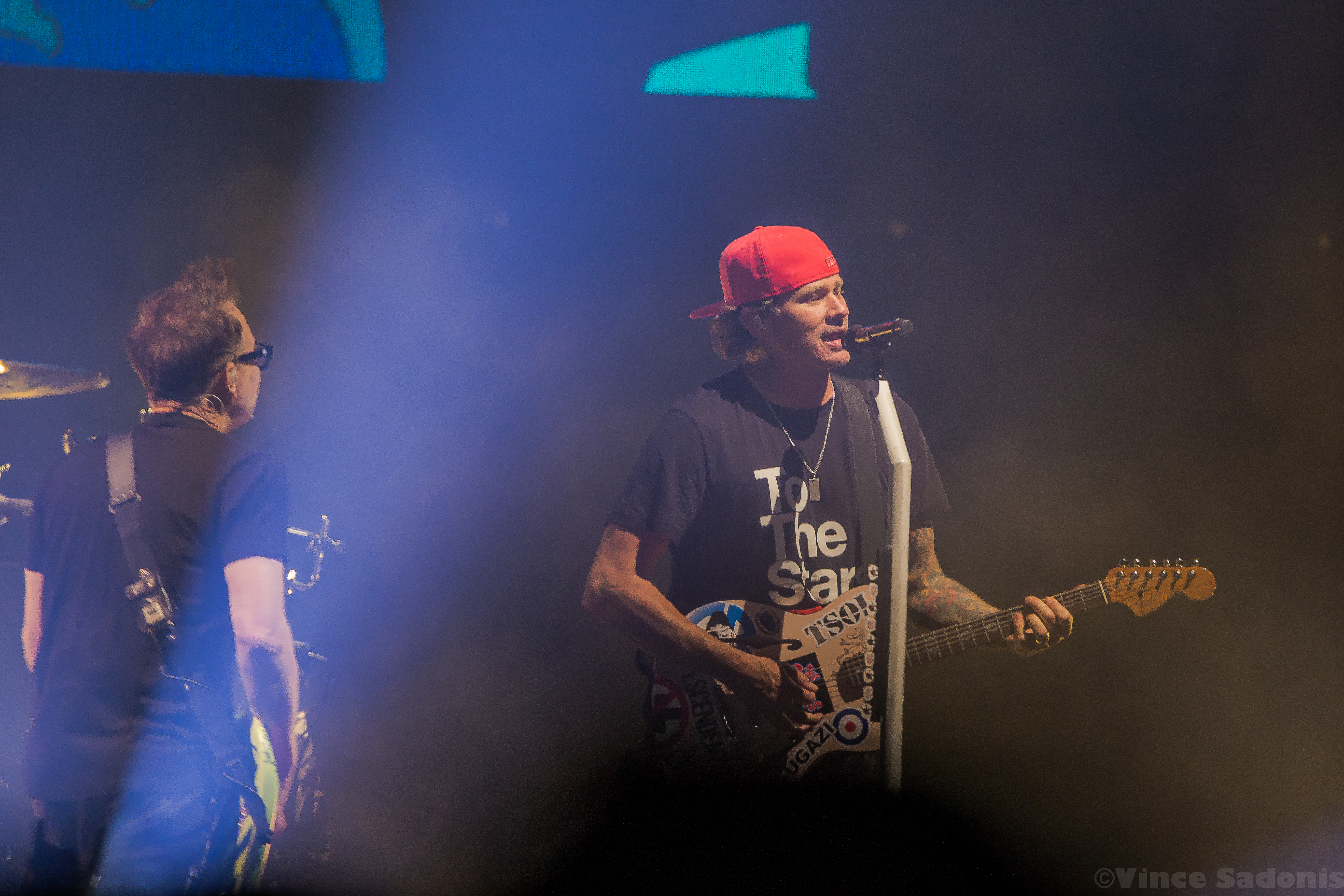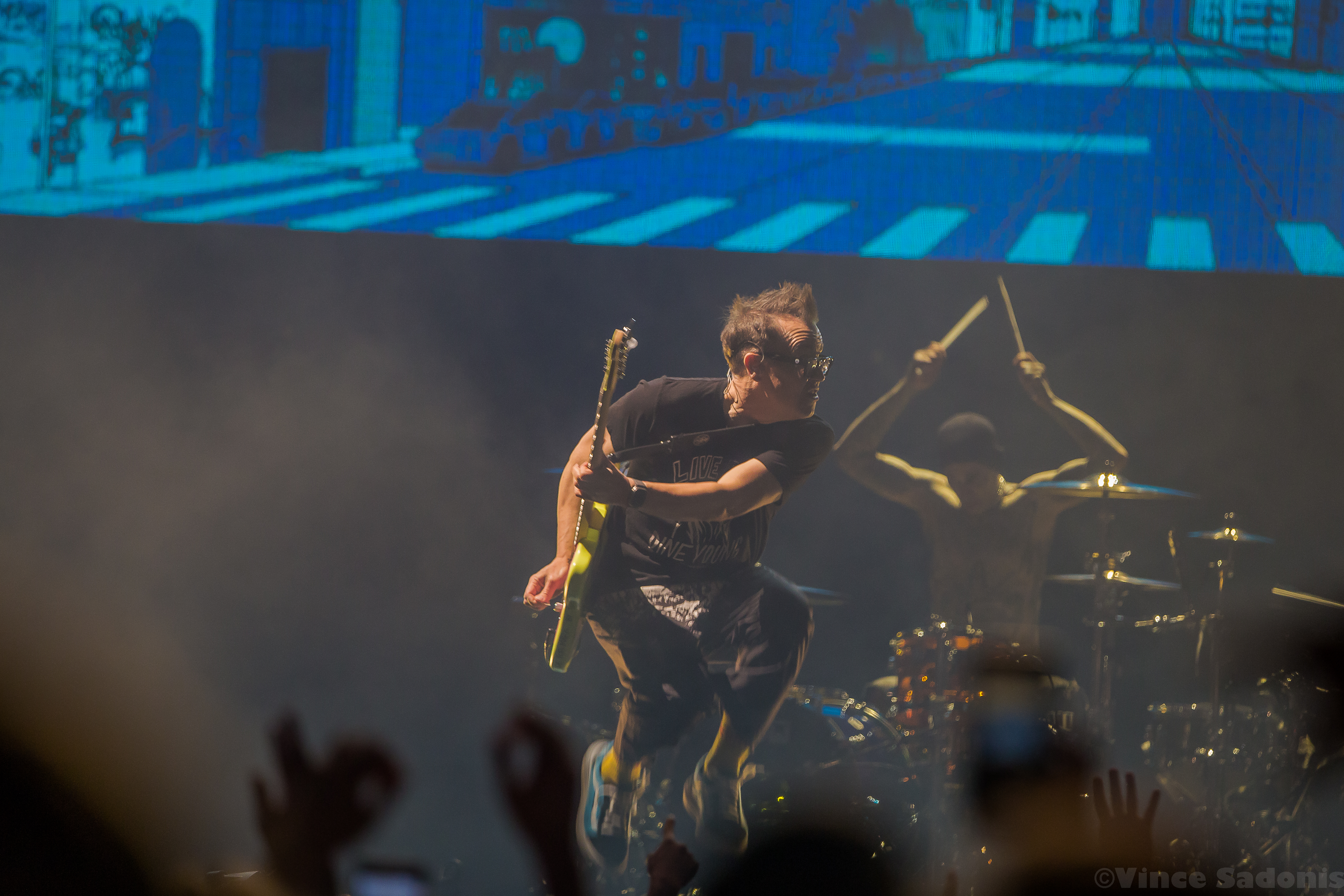 Throughout their set they played all their major hits including their latest single “Edging”, but it was very interesting to hear “Cynical” and “Bored To Death”. These songs were released during the Skiba era and hearing Tom take over his parts fit perfectly. When Skiba originally joined, I remember Mark saying in an interview that they wanted someone that can hit Tom’s notes naturally. Skiba was their first choice and boy were they right to choose him. Hearing the California songs with Tom singing was a duh they really do sing the same way. I didn’t realize it then, but hearing both now, it was a no brainer that Skiba was a perfect replacement.