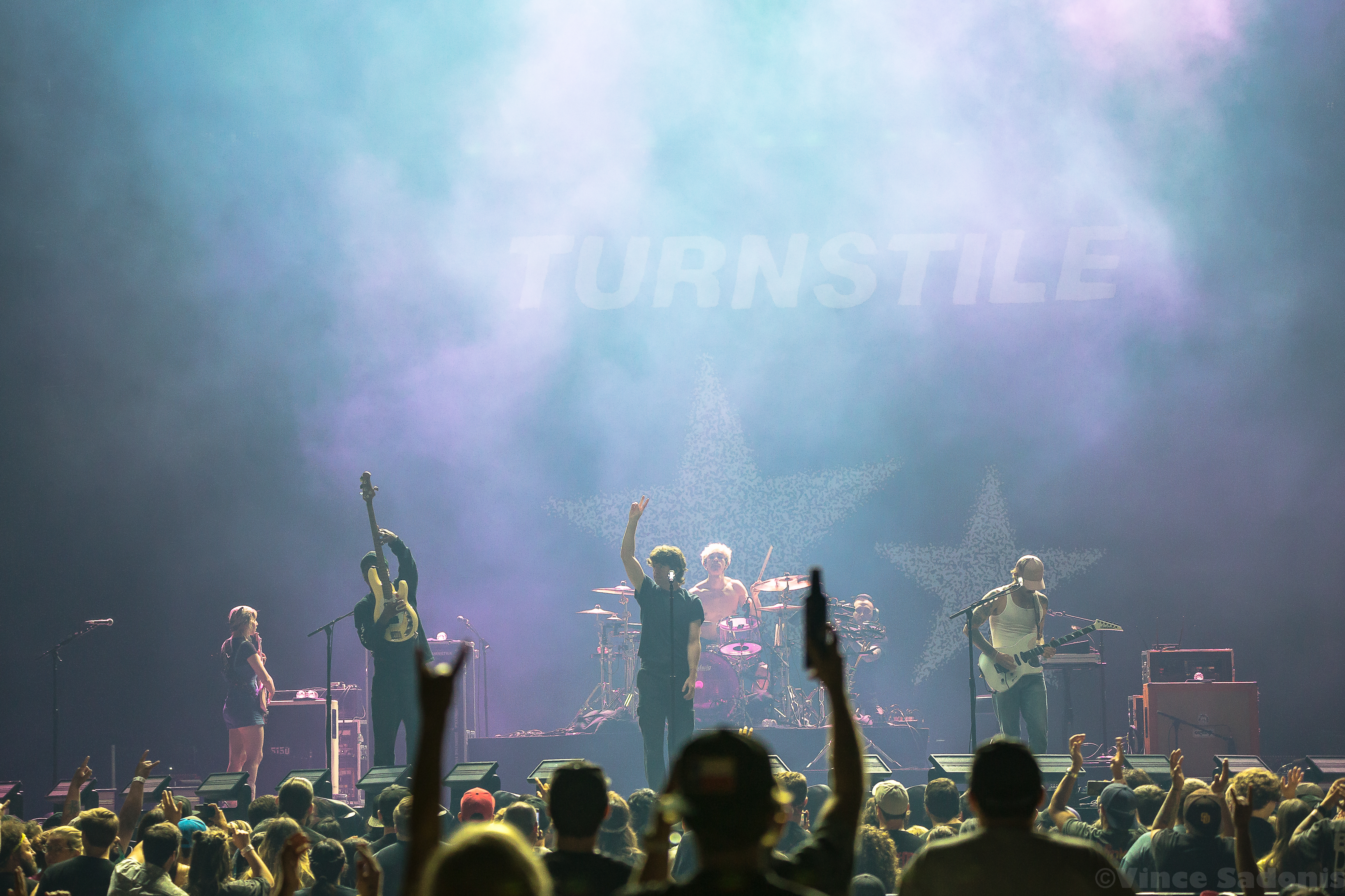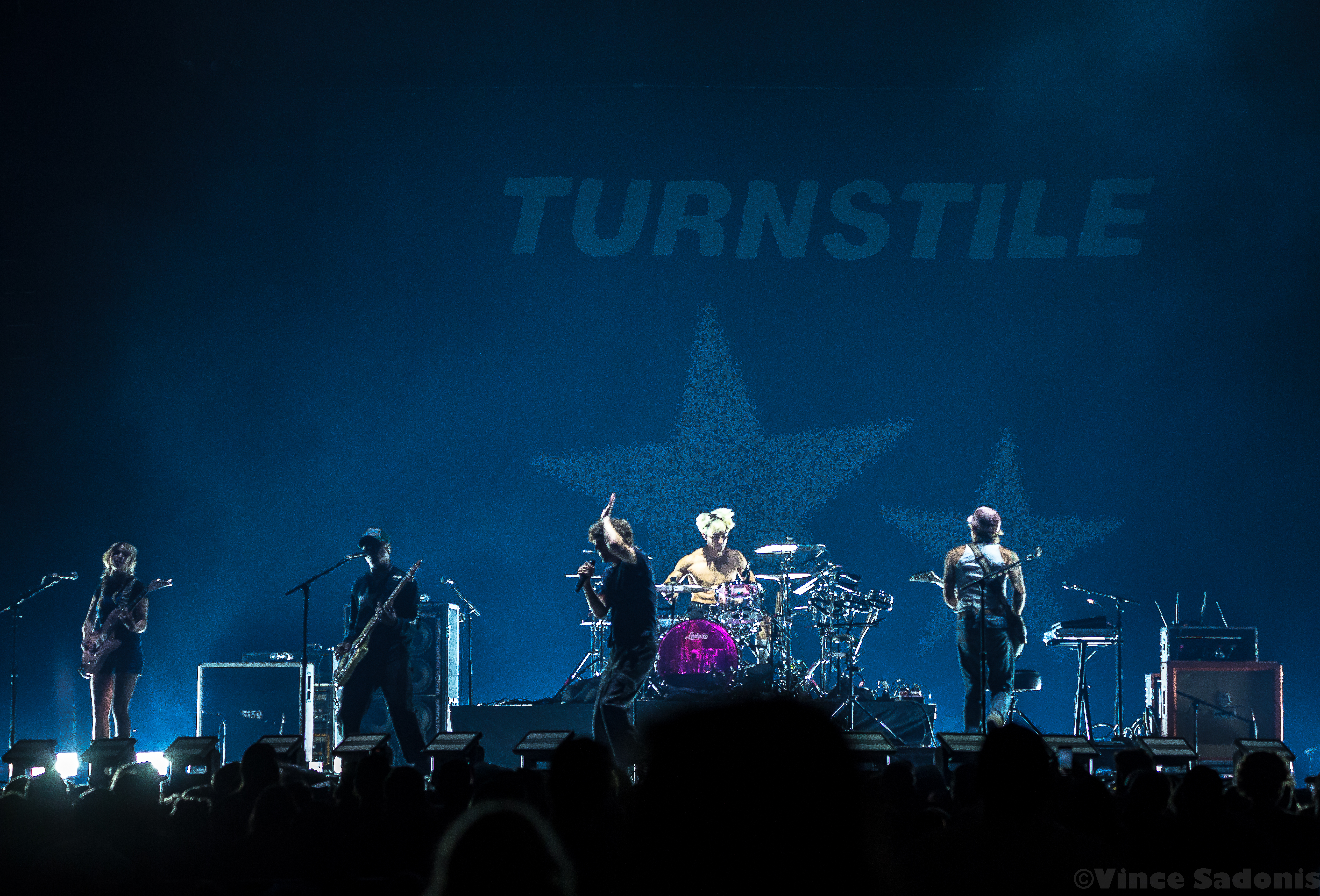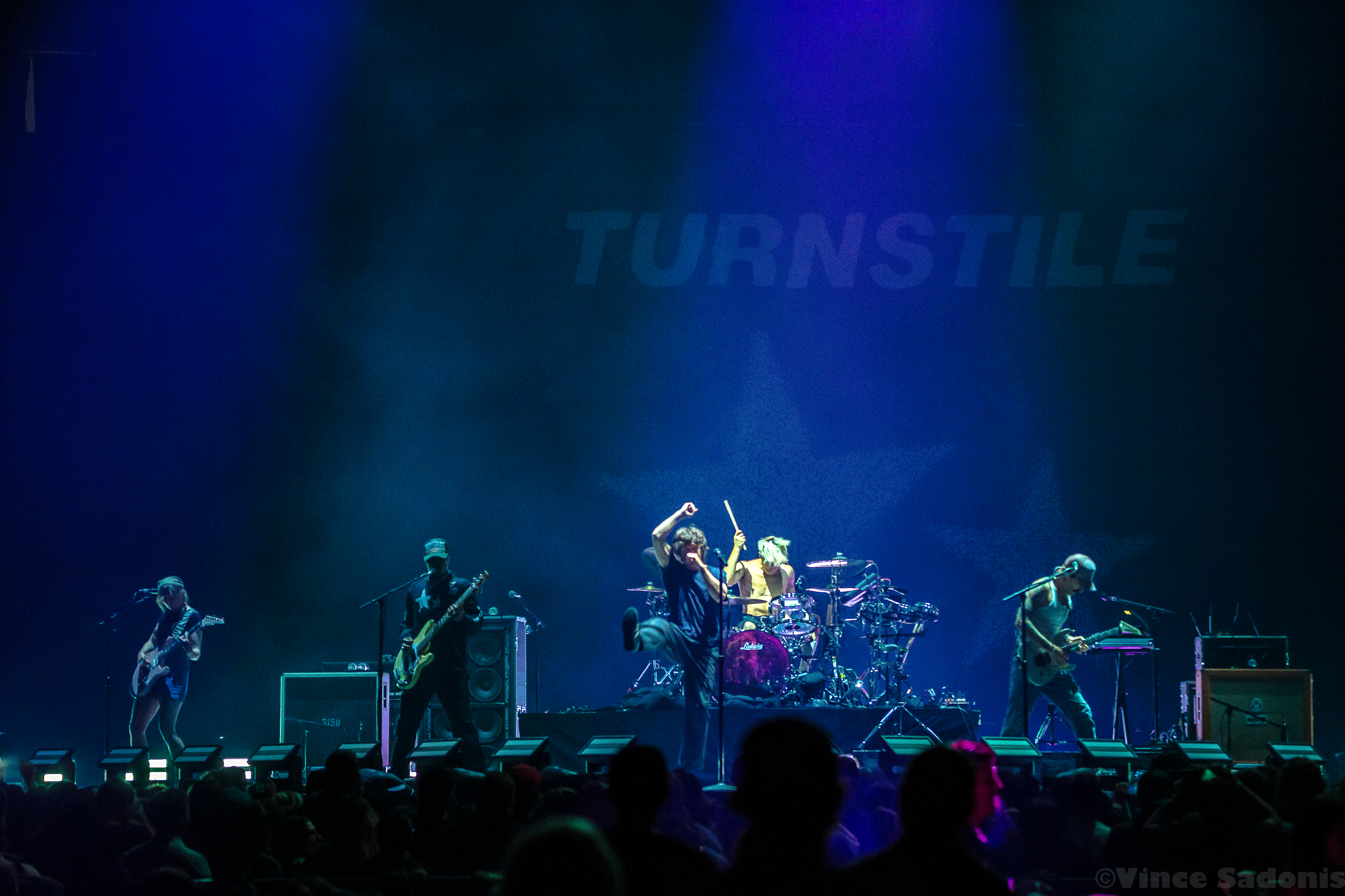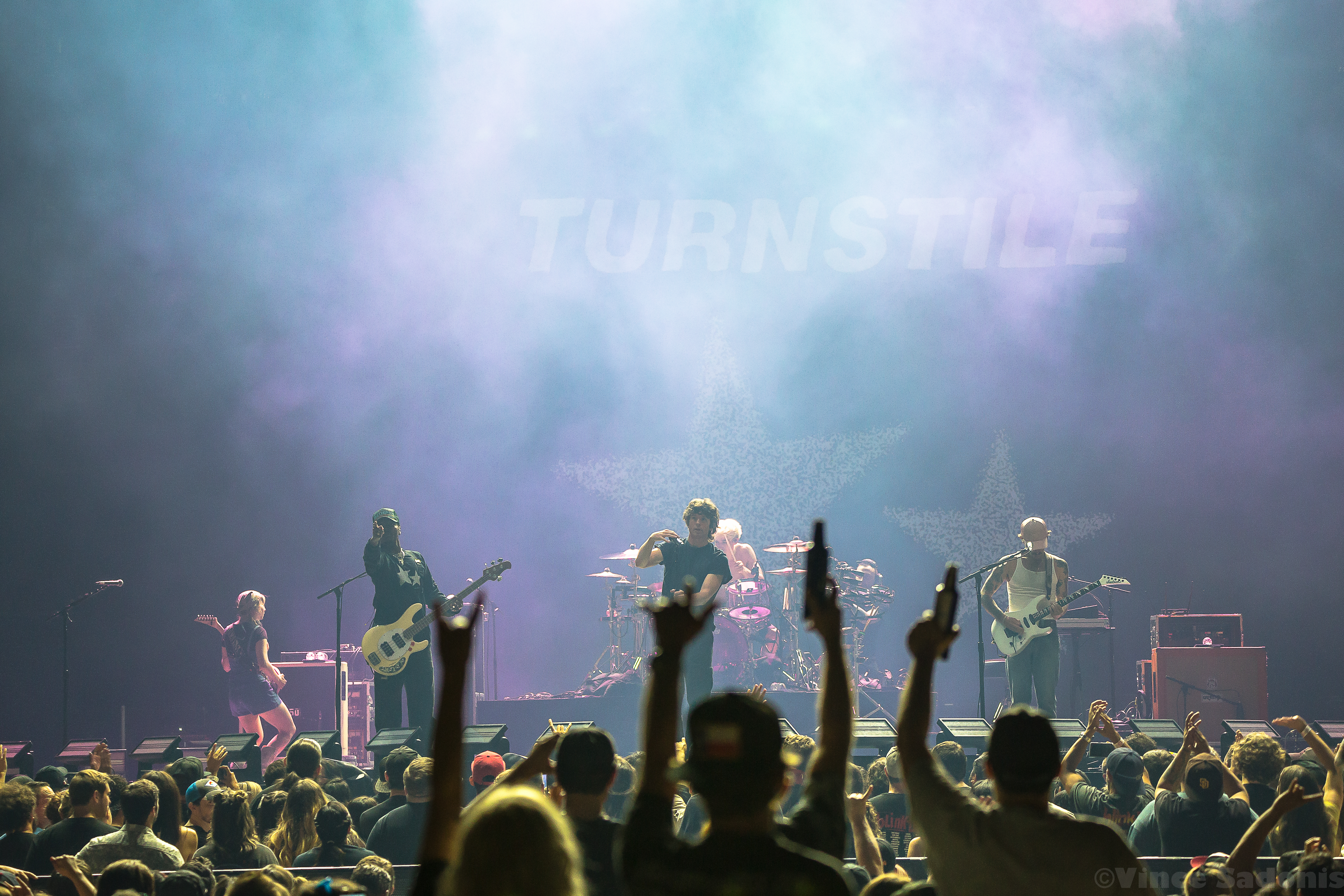The next band was a band that has been making waves recently, and I couldn’t pin point when it started to happen, but it is happening in a big way. It was clear that once they hit the stage, the crowd broke into singing along and moving around in the pit. It is rare seeing a hardcore band getting this much attention, but Turnstile is getting the attention and it is great seeing it happening. Their live performance on a big stage was just a tease, because their sound needs to be witnessed in a small space. I can already see the people jumping off the stage, the circle pits, and the sing alongs with singer Brendan Yates if this was a smaller venue. I could only imagine the atmosphere in a small club, but for this tour, Turnstile worked with this bigger stage to make the audience feel more connected. Almost every song played was from their latest album Glow On, which makes because since this album has probably became a lot of fans gateway into this band and hardcore music. Even though Turnstile has other releases, I think after this tour you’d have to wait to hear older songs when they do a headline tour. When that is is still to be determined, but this tour with Blink 182 brought them even more exposure and it is only upward from here.