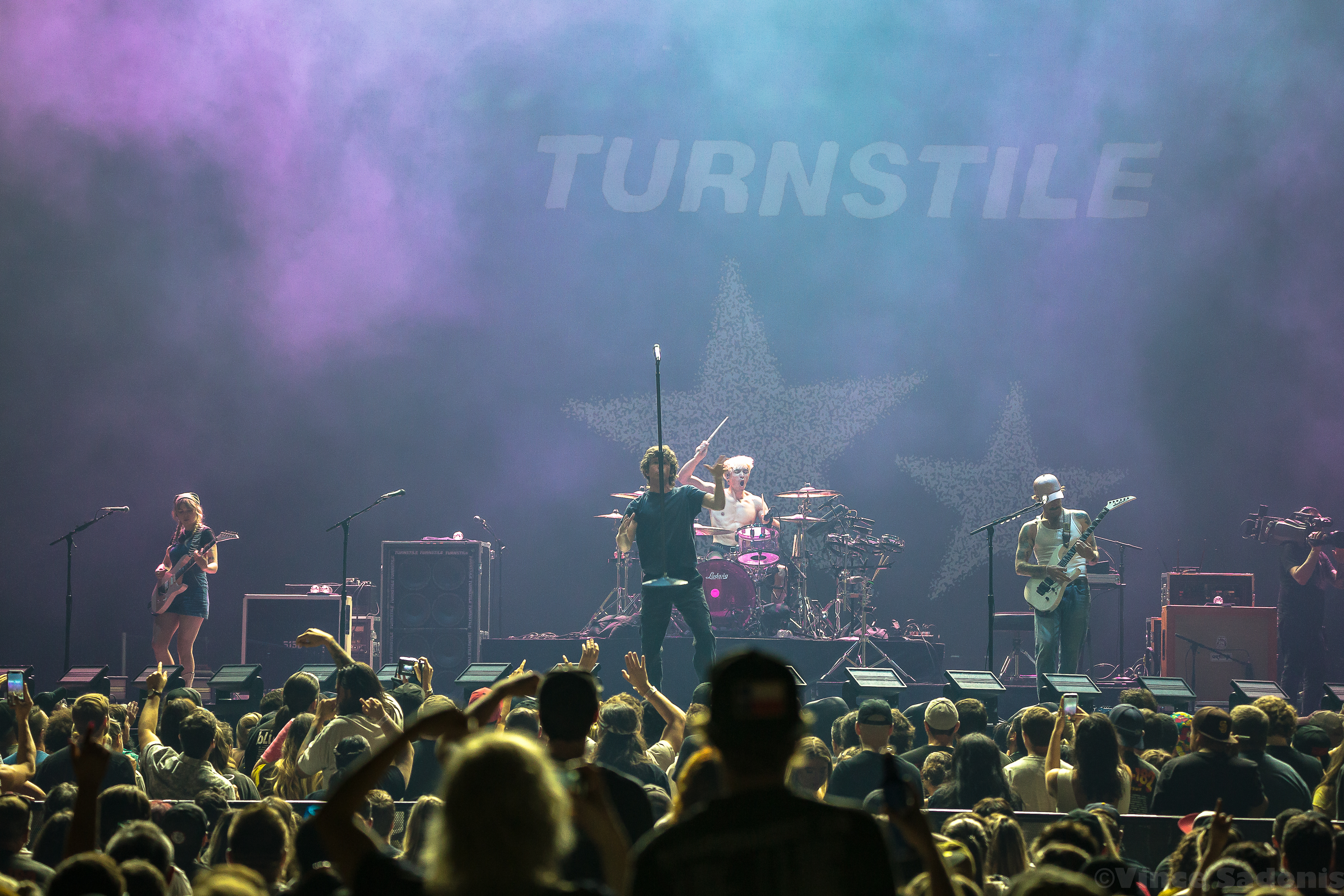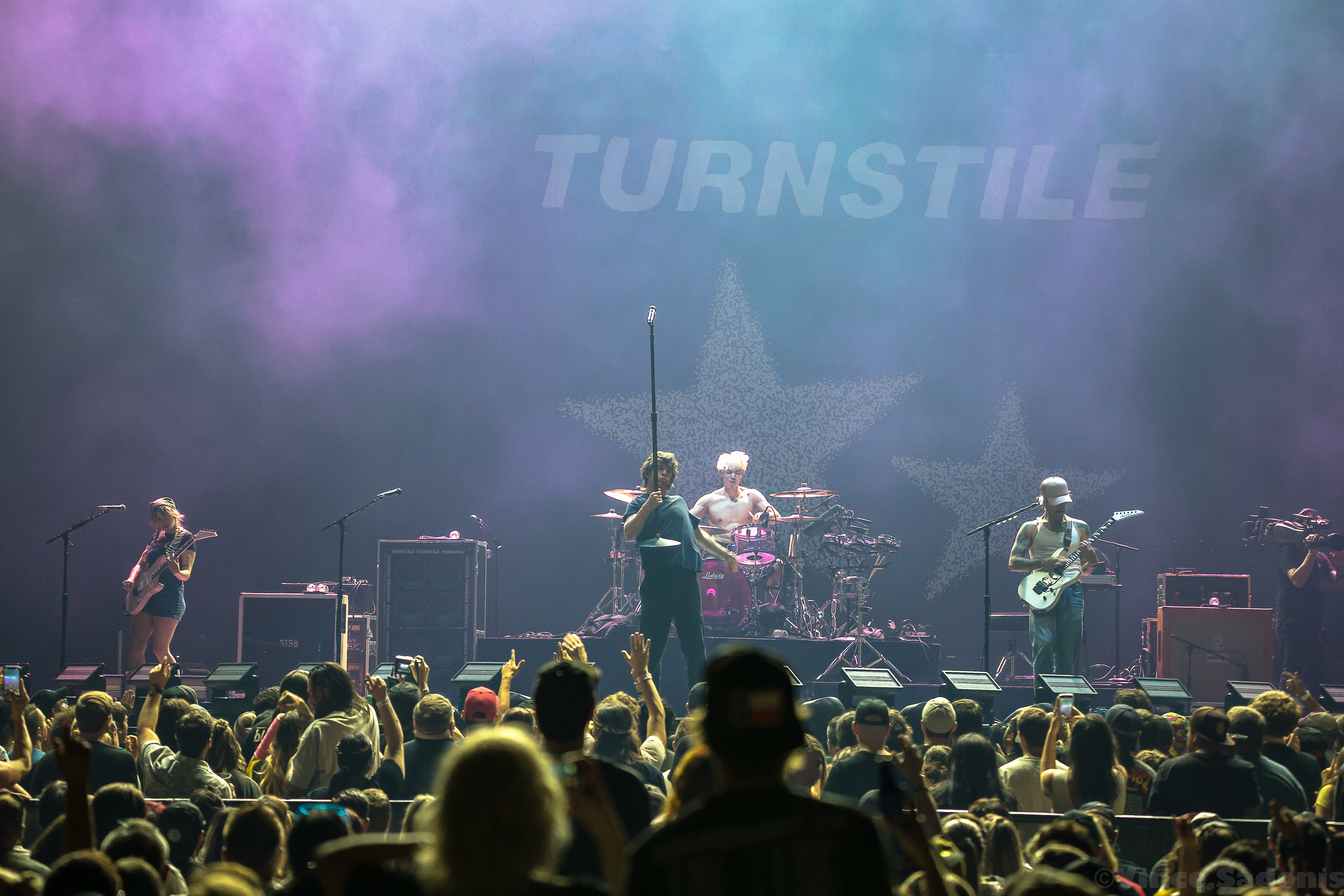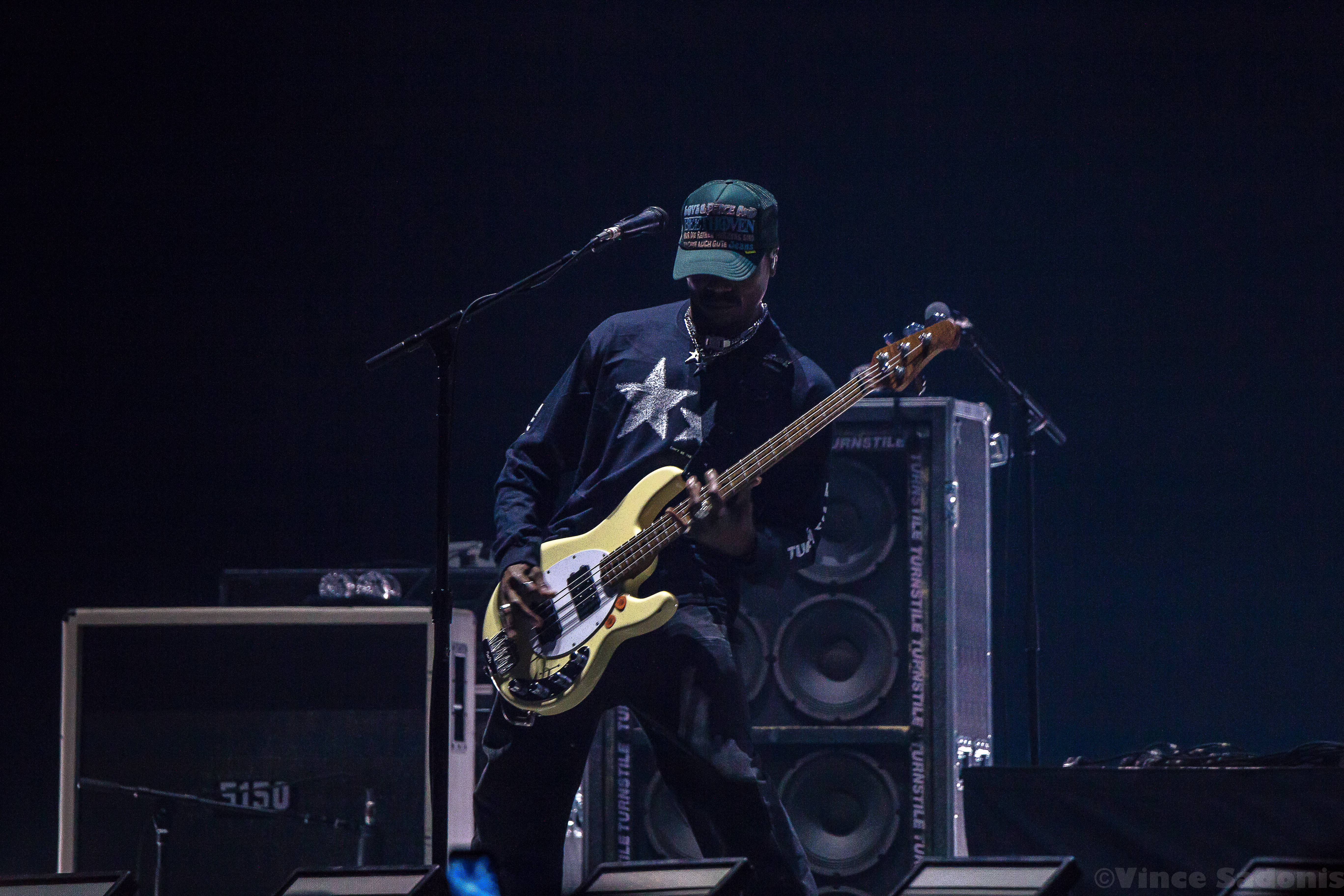 The next band was a band that has been making waves recently, and I couldn’t pin point when it started to happen, but it is happening in a big way. It was clear that once they hit the stage, the crowd broke into singing along and moving around in the pit. It is rare seeing a hardcore band getting this much attention, but Turnstile is getting the attention and it is great seeing it happening. Their live performance on a big stage was just a tease, because their sound needs to be witnessed in a small space. I can already see the people jumping off the stage, the circle pits, and the sing alongs with singer Brendan Yates if this was a smaller venue. I could only imagine the atmosphere in a small club, but for this tour, Turnstile worked with this bigger stage to make the audience feel more connected. Almost every song played was from their latest album Glow On, which makes because since this album has probably became a lot of fans gateway into this band and hardcore music. Even though Turnstile has other releases, I think after this tour you’d have to wait to hear older songs when they do a headline tour. When that is is still to be determined, but this tour with Blink 182 brought them even more exposure and it is only upward from here.
