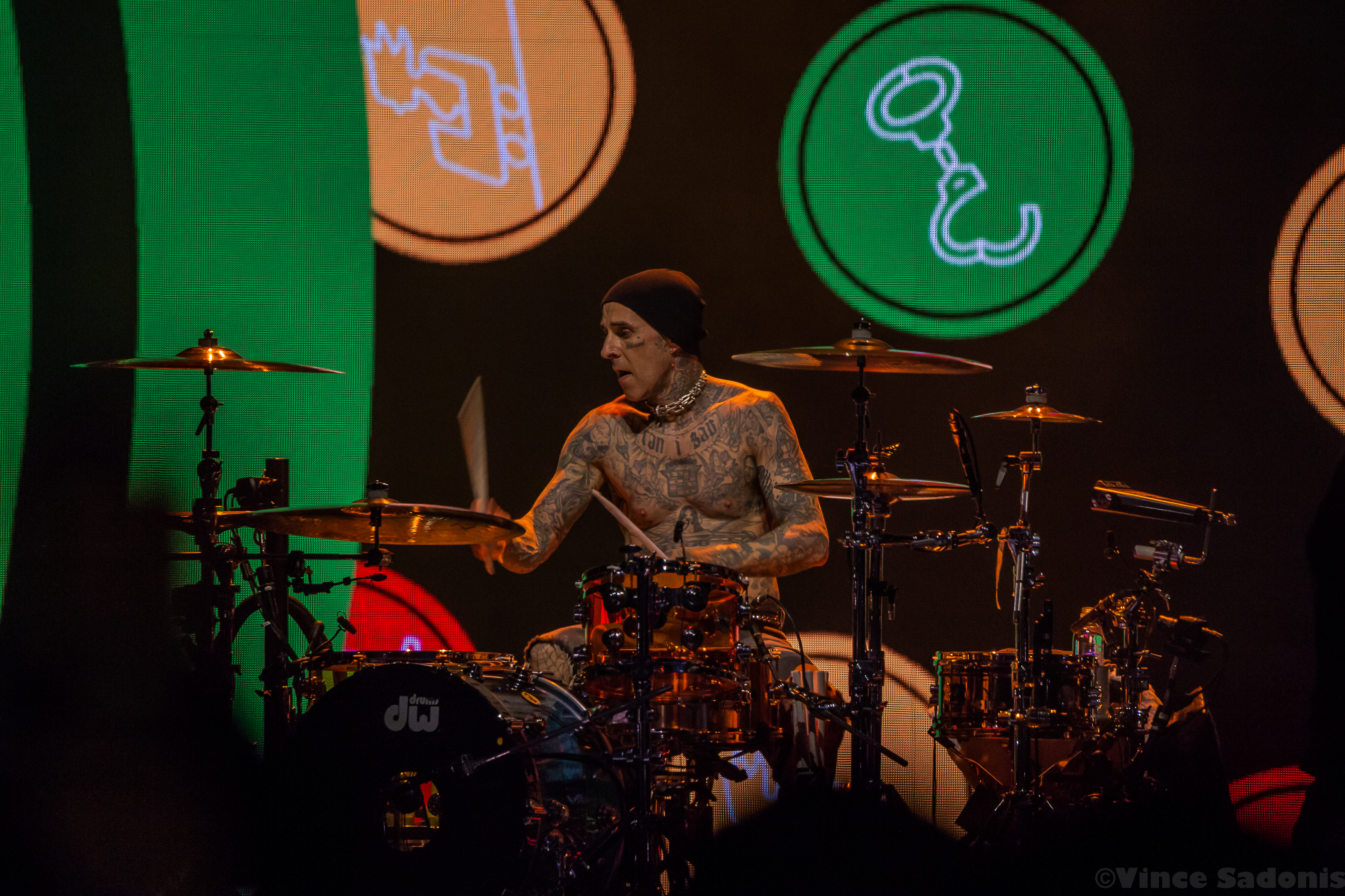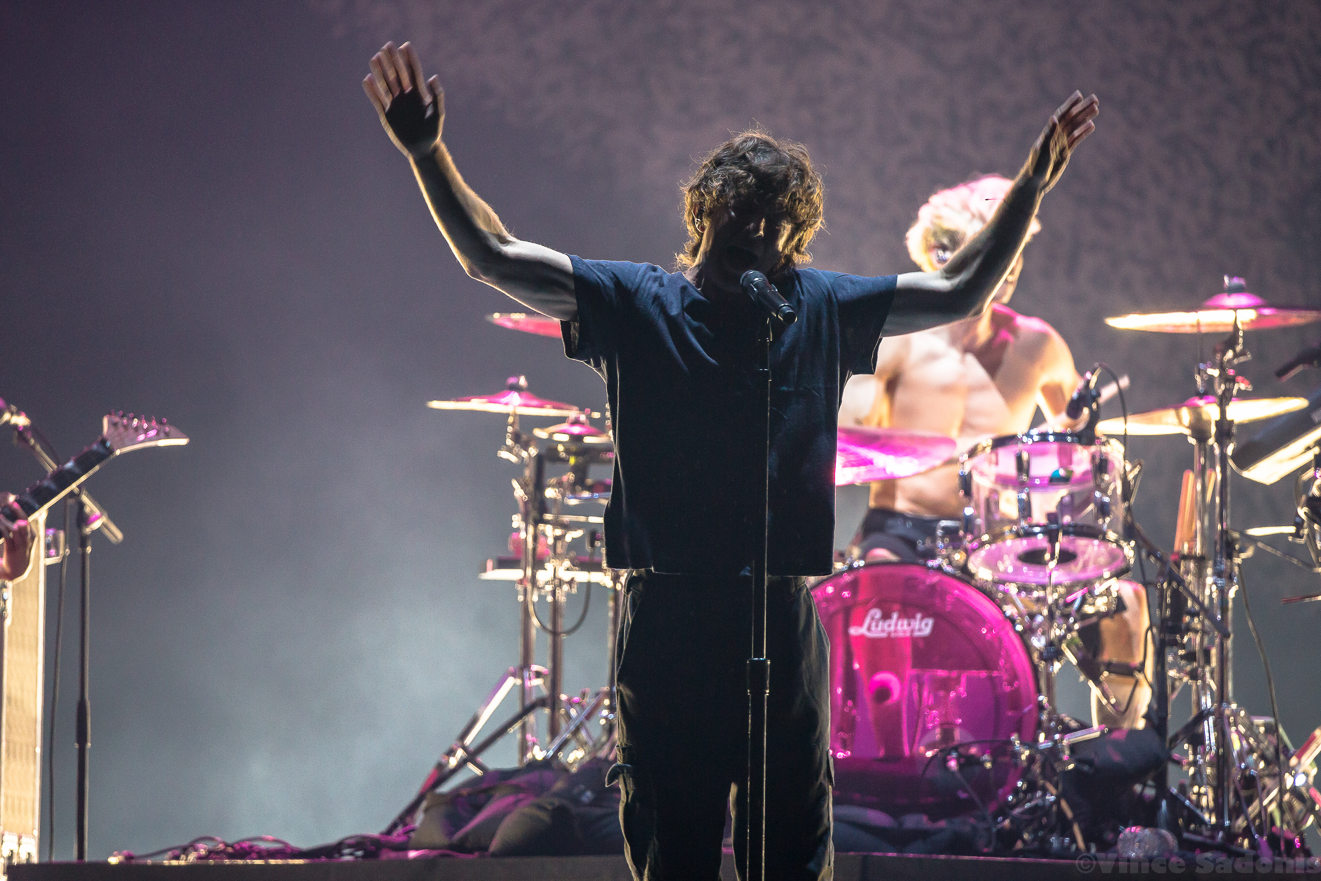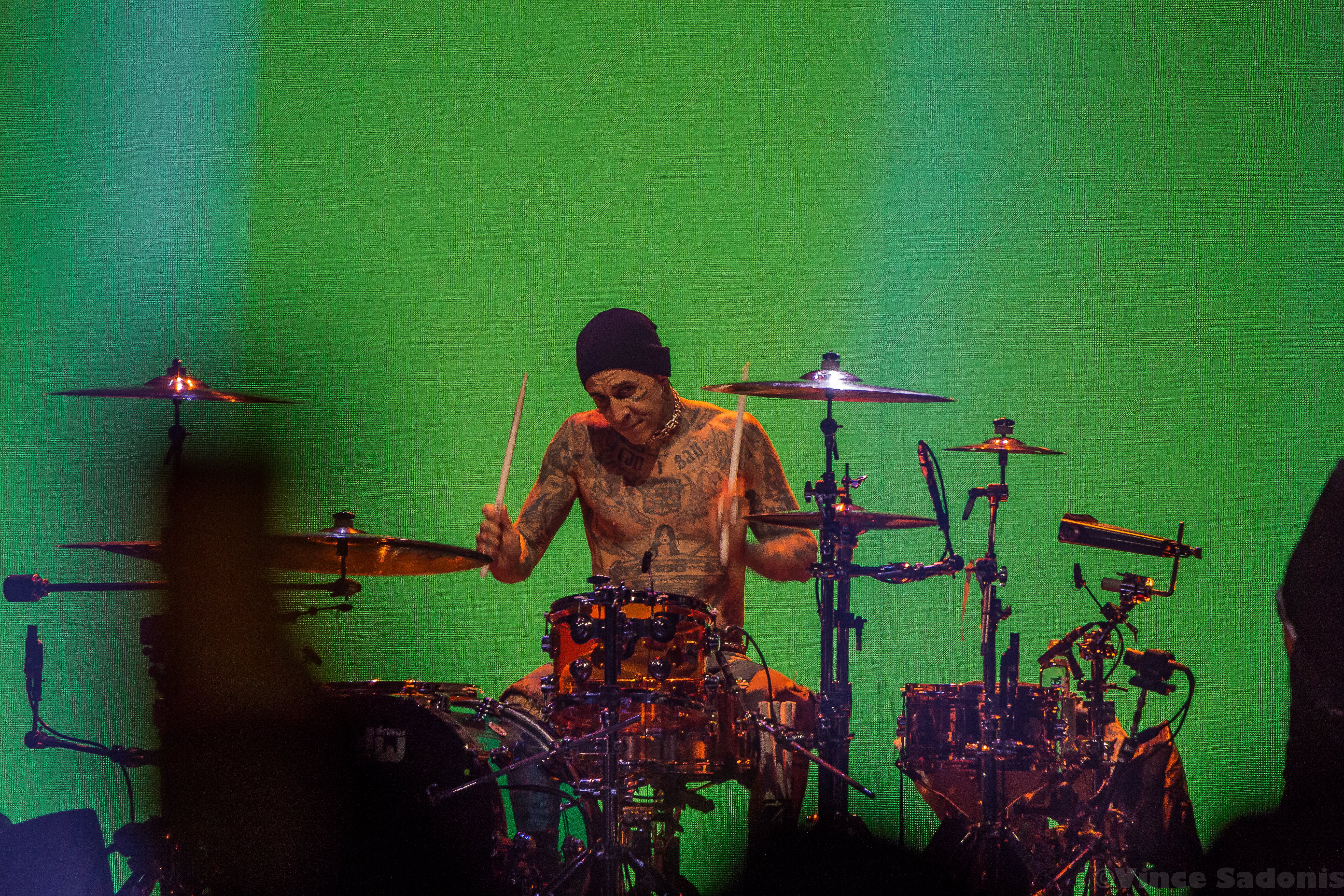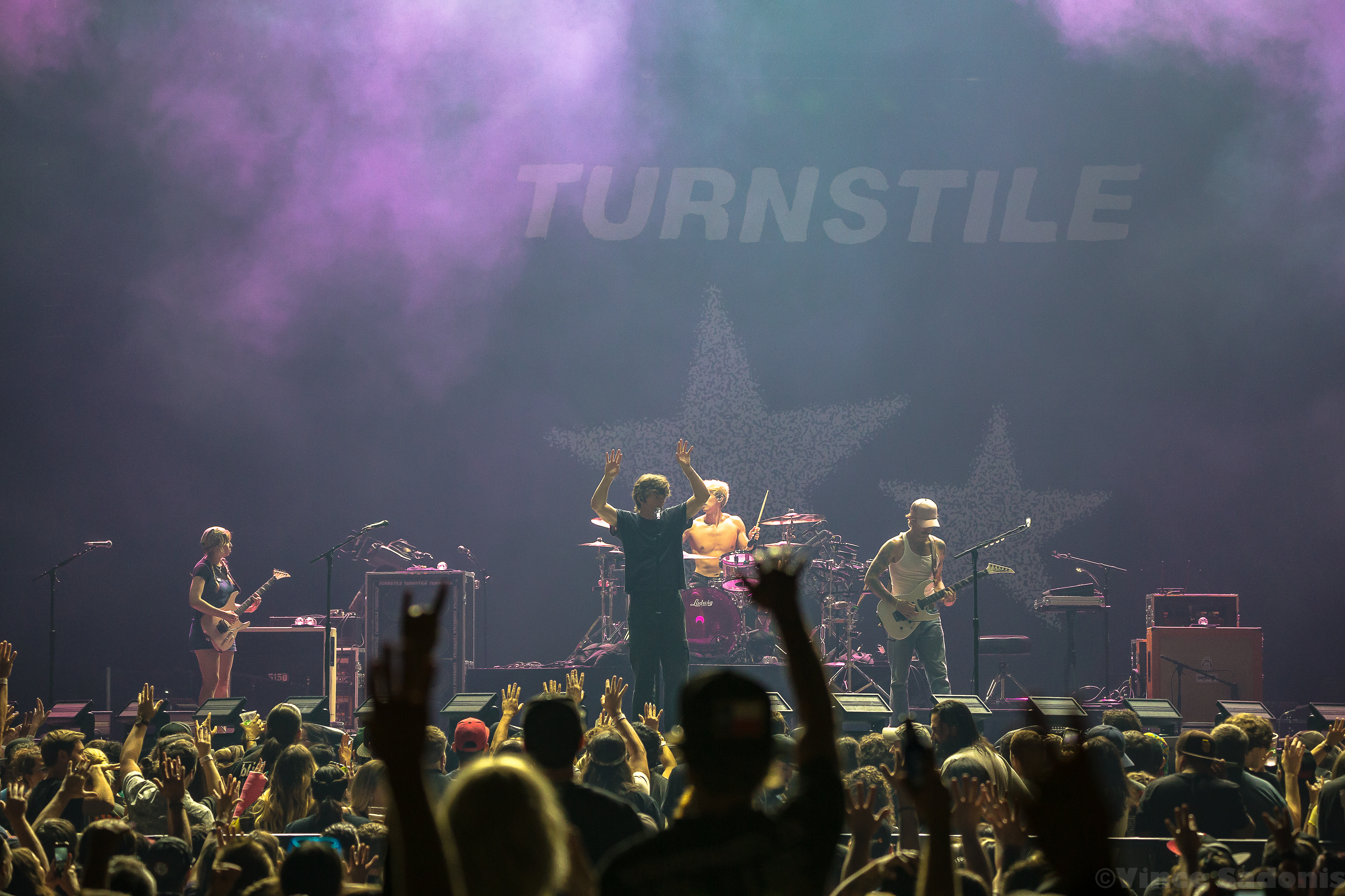 The next band was a band that has been making waves recently, and I couldn’t pin point when it started to happen, but it is happening in a big way. It was clear that once they hit the stage, the crowd broke into singing along and moving around in the pit. It is rare seeing a hardcore band getting this much attention, but Turnstile is getting the attention and it is great seeing it happening. Their live performance on a big stage was just a tease, because their sound needs to be witnessed in a small space. I can already see the people jumping off the stage, the circle pits, and the sing alongs with singer Brendan Yates if this was a smaller venue. I could only imagine the atmosphere in a small club, but for this tour, Turnstile worked with this bigger stage to make the audience feel more connected. Almost every song played was from their latest album Glow On, which makes because since this album has probably became a lot of fans gateway into this band and hardcore music. Even though Turnstile has other releases, I think after this tour you’d have to wait to hear older songs when they do a headline tour. When that is is still to be determined, but this tour with Blink 182 brought them even more exposure and it is only upward from here.