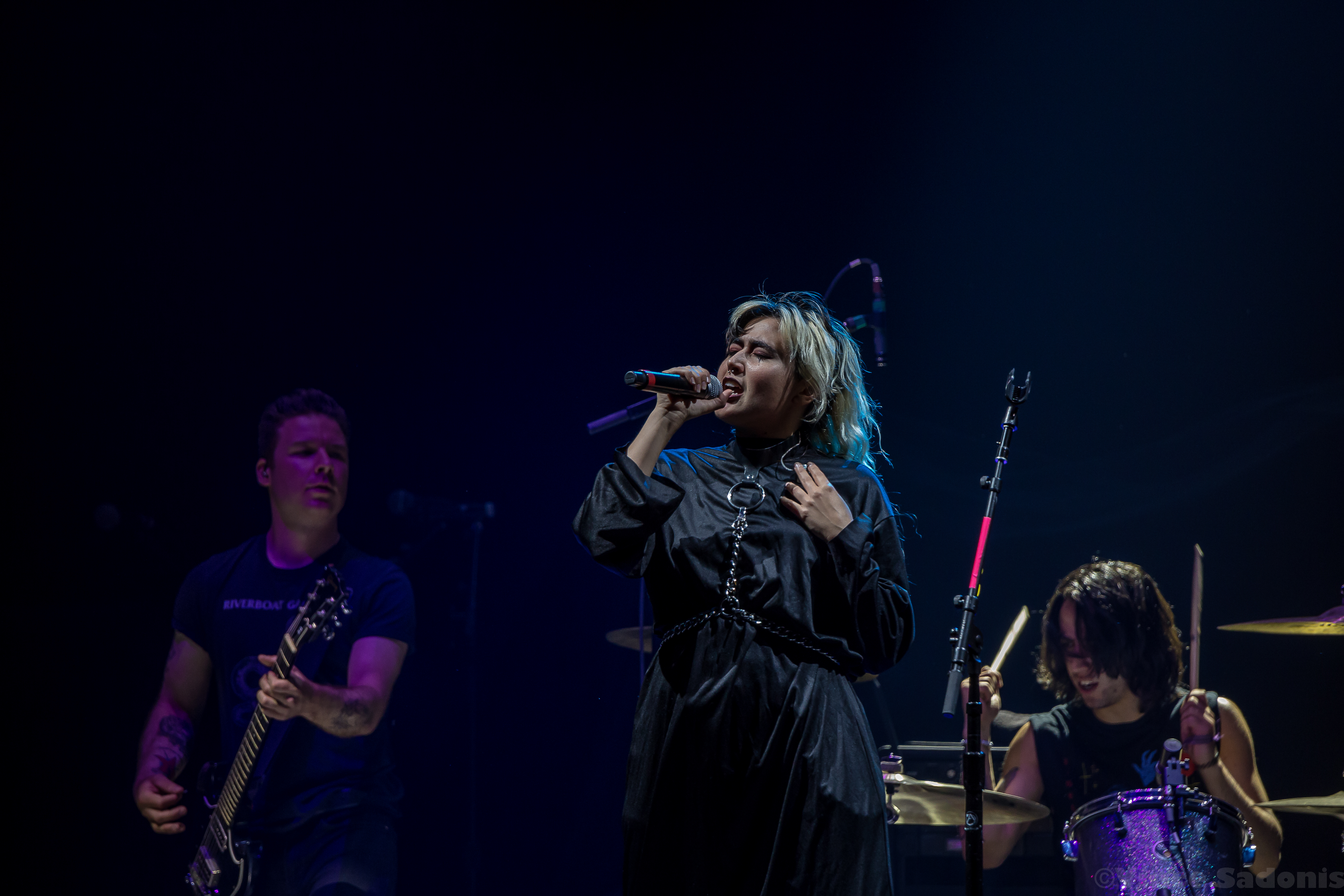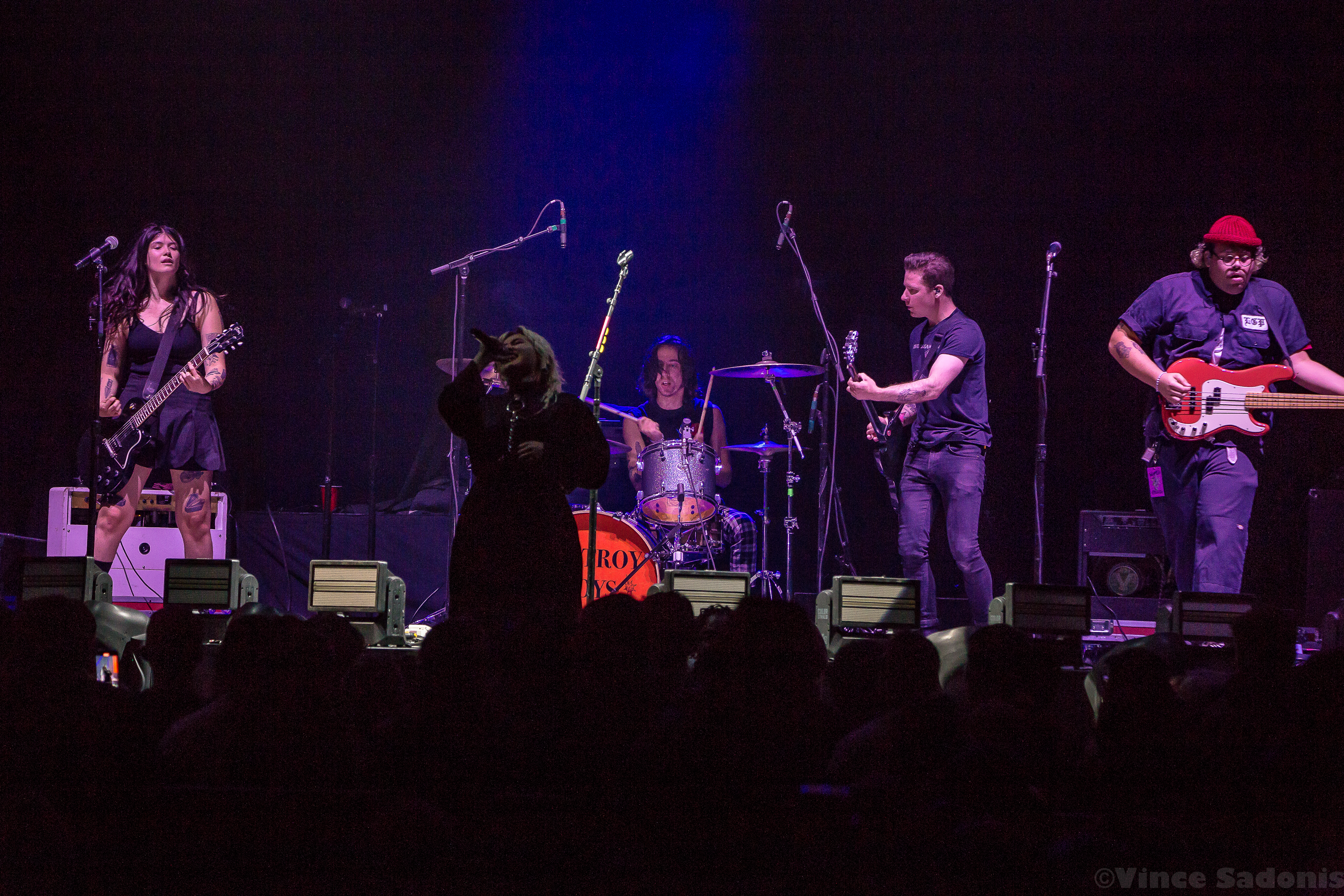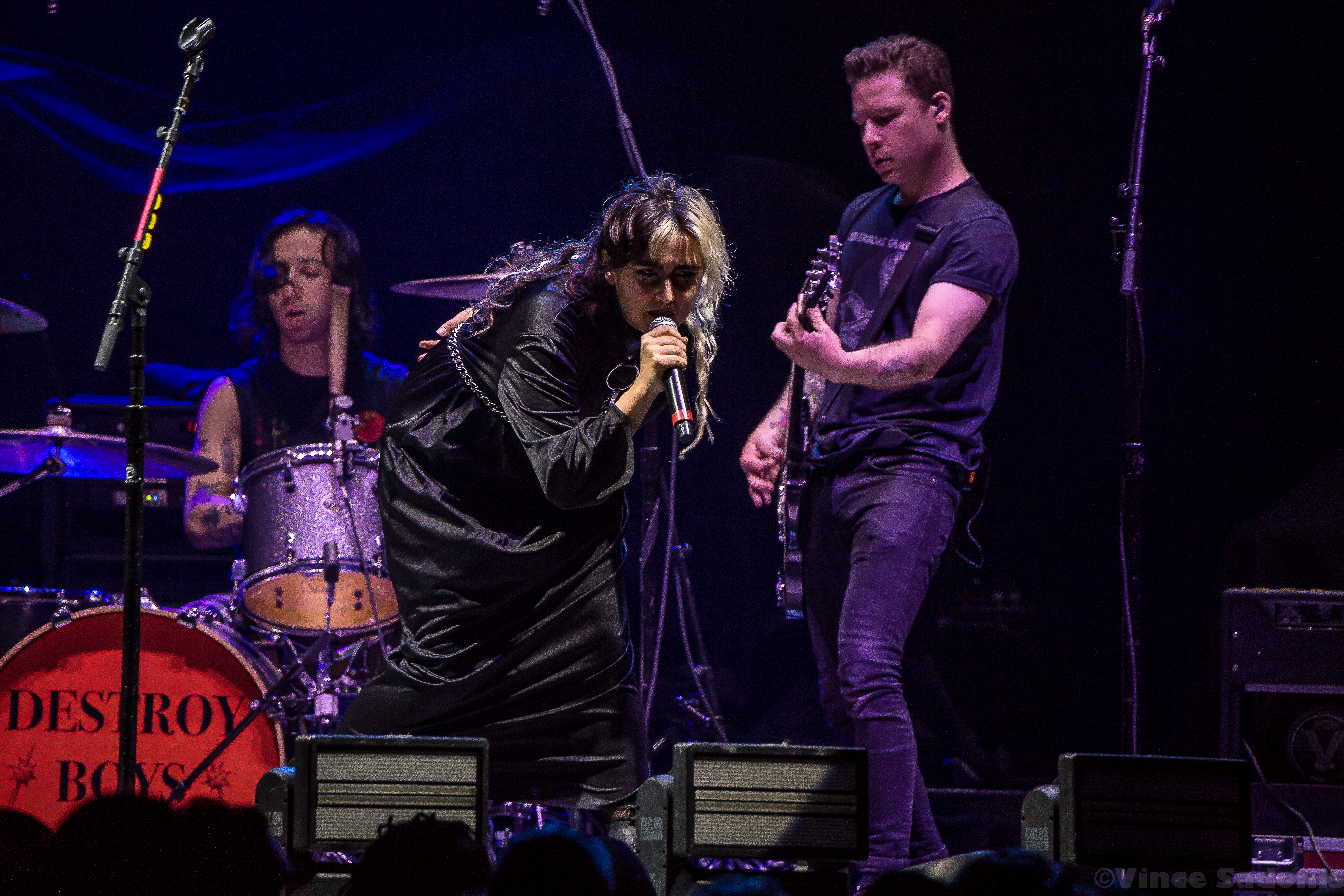For this date of the tour, latest Hopeless Records signing Destory Boys opened the show. Singer Alexia Roditis came out dressed as a nun, which may have been a jab at the loud Christian protesters who were in front of the venue. They were proclaiming everyone is going to hell for attending the concert. If the nun outfit wasn’t towards them, it was a coincidence. The band would then break into a cover of “Bulls On Parade” by Rage Against The Machine, which was done very well. Even though Destroy Boys are a new signing to Hopeless Records, they have plenty of material out for they have been performing since around 2015. They performed songs from almost all their albums with the most being from Open Mouth, Open Heart. With almost a pack venuealready, Destroy Boys put on a great show that showcased the spirit of punk as if it was performed in a small venue.