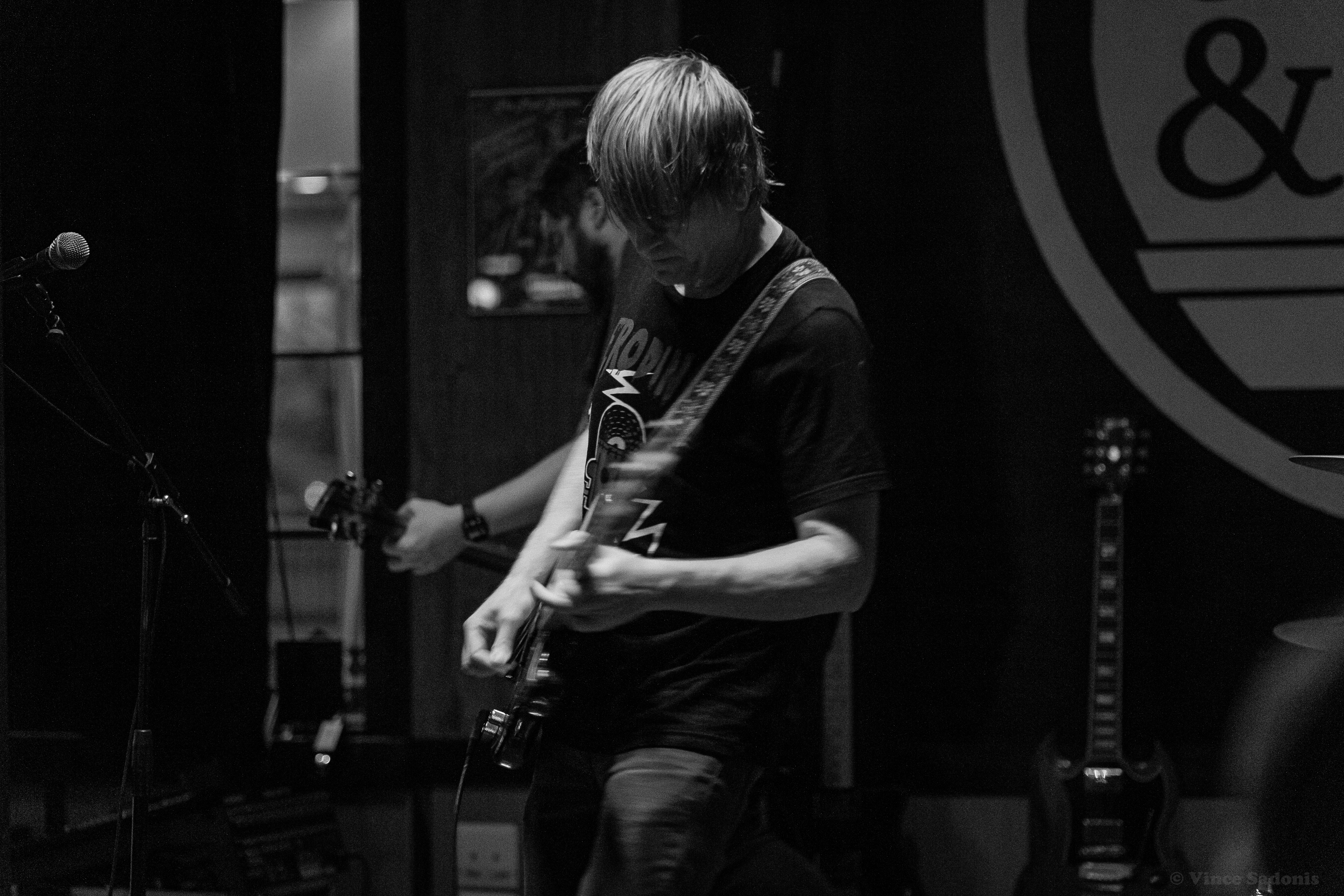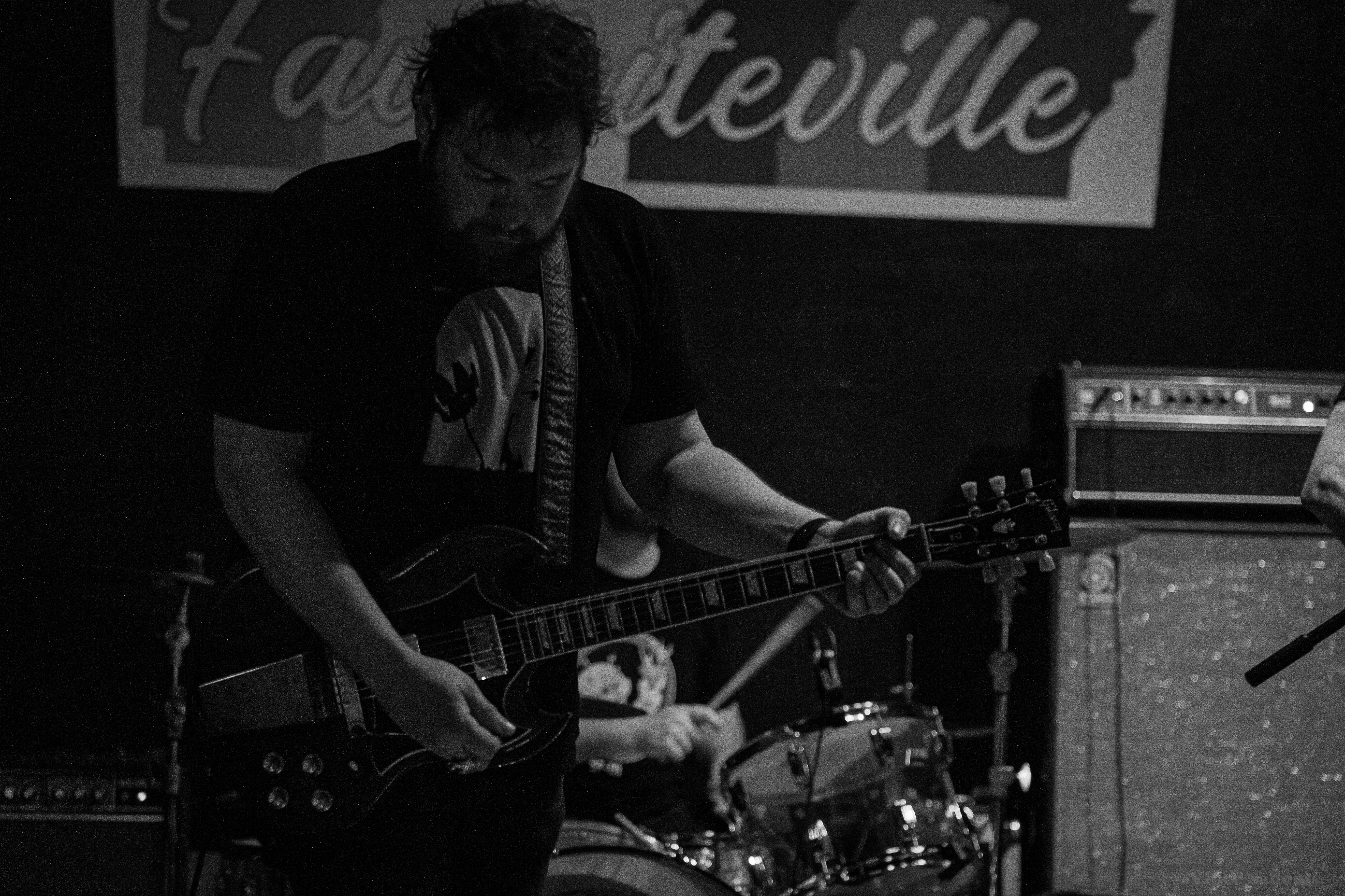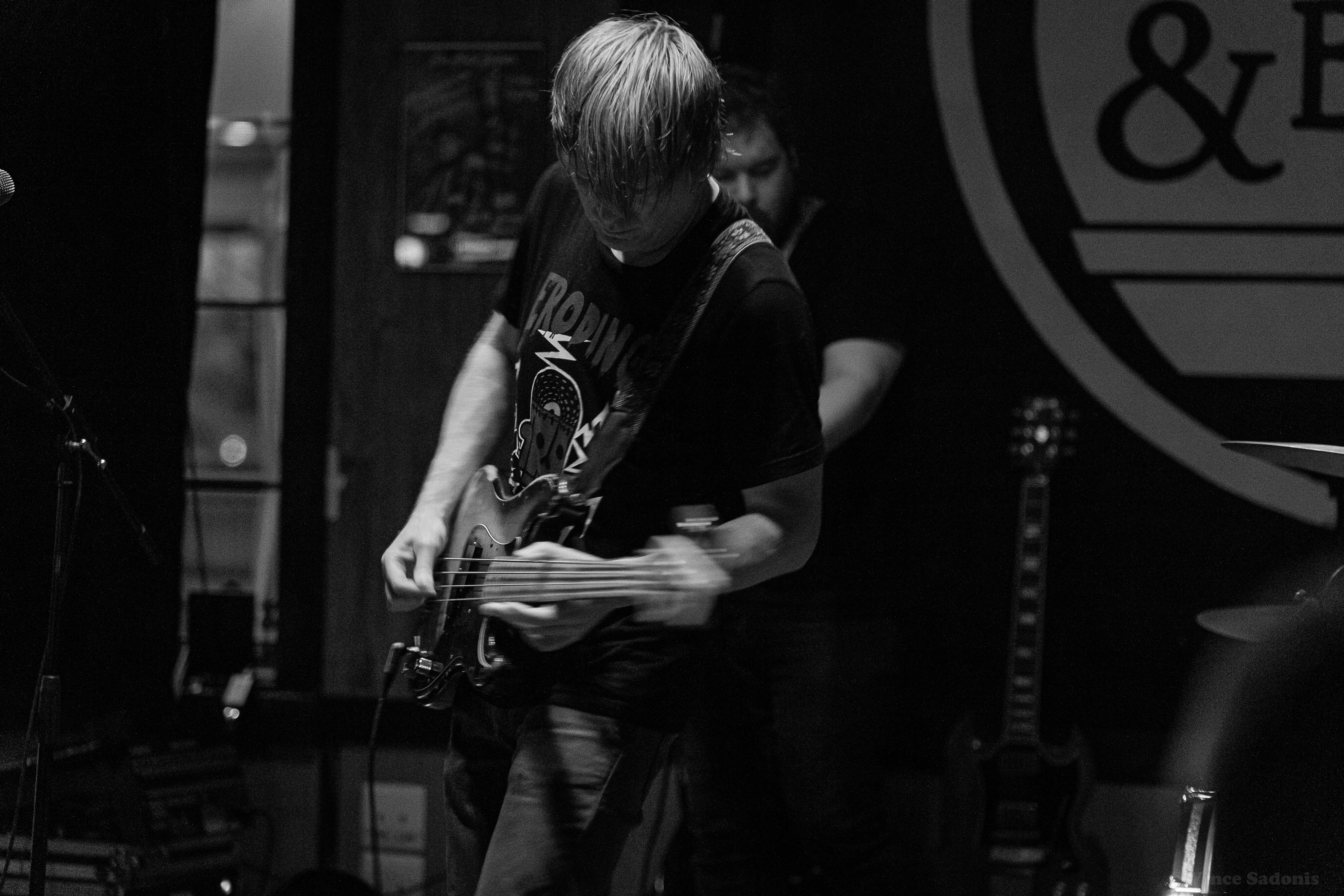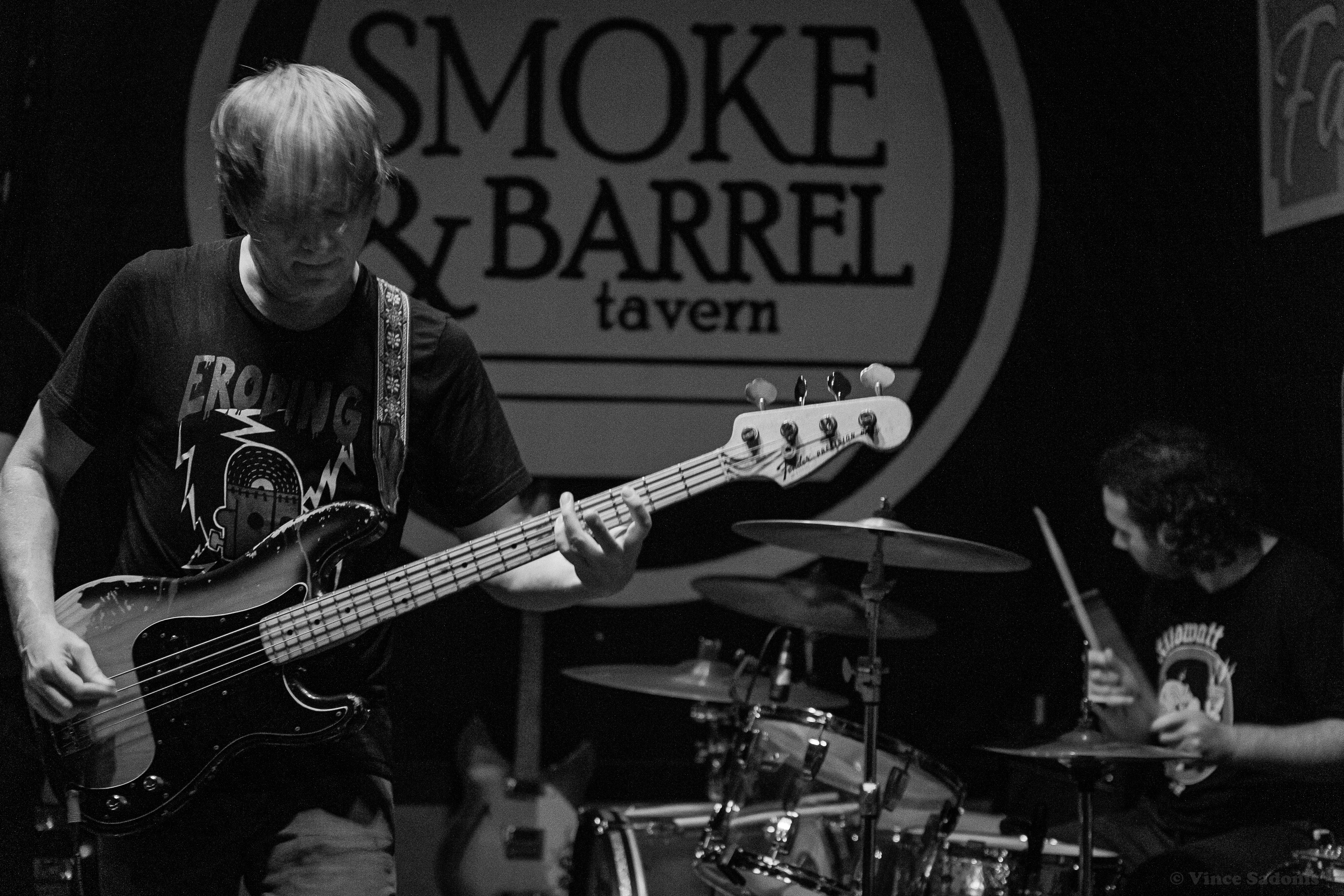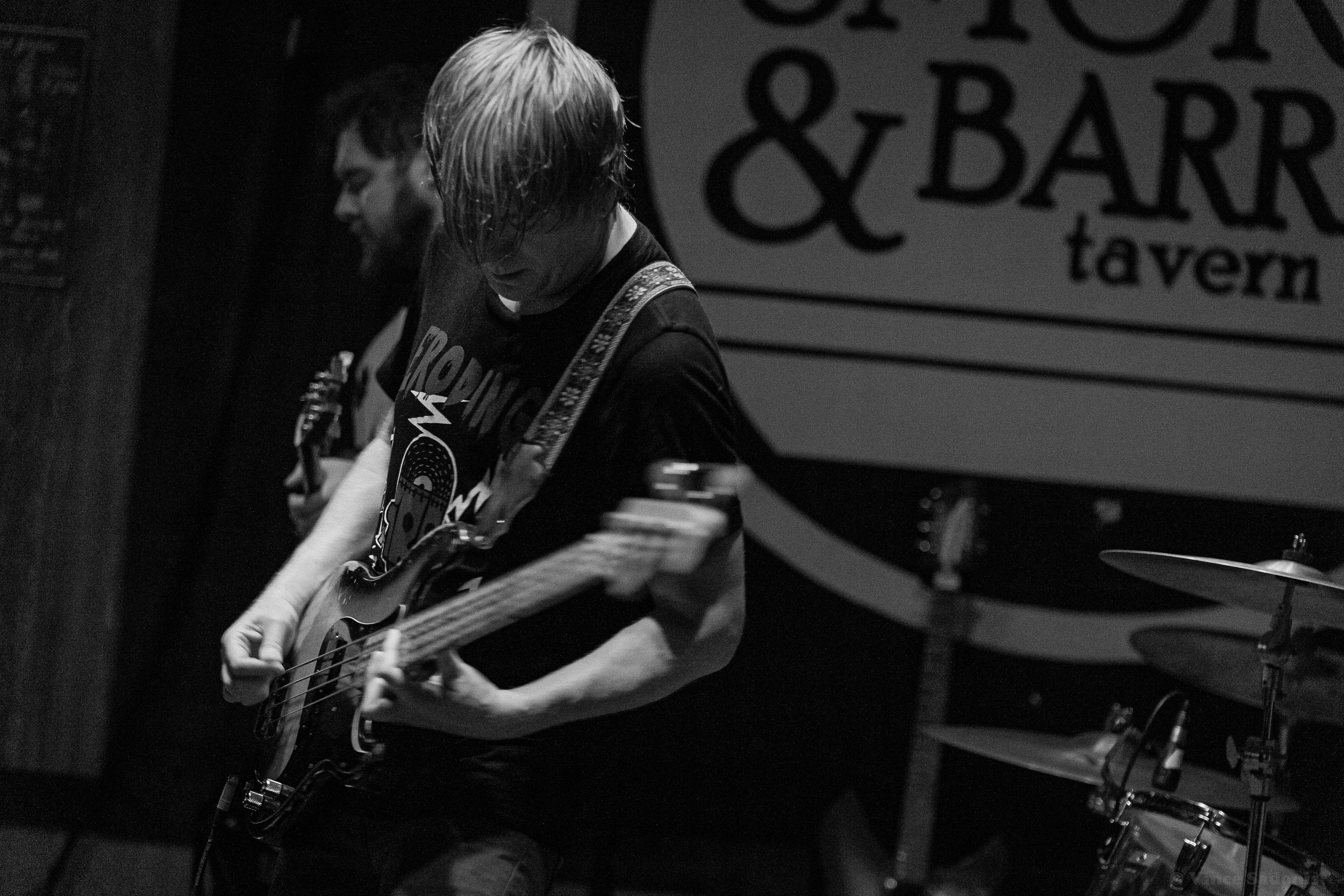 Unwed Sailor made their return to Smoke & Barrel in Fayetteville, AR for the second time these year, see their May visit here. This time around they had two local openers, Judason Void and Olympics on the bill. Hailing from Fayetteville, AR Judson Void is described as a shoegaze indie rock band, however for this show it was just singer Skylar Johnson on acoustic guitar and kick drum. Without the full band, Judason Void was a very mellow, relaxing set to listen to. Most of the crowd was sitting and drinking while Skylar’s music soothed everyone. Judging by past performances online, this version of Judason Void has been playing around Arkansas and the surrounding states for some time. Regardless of the version you see live, it is guaranteed you will enjoy the music Judason Void presents.