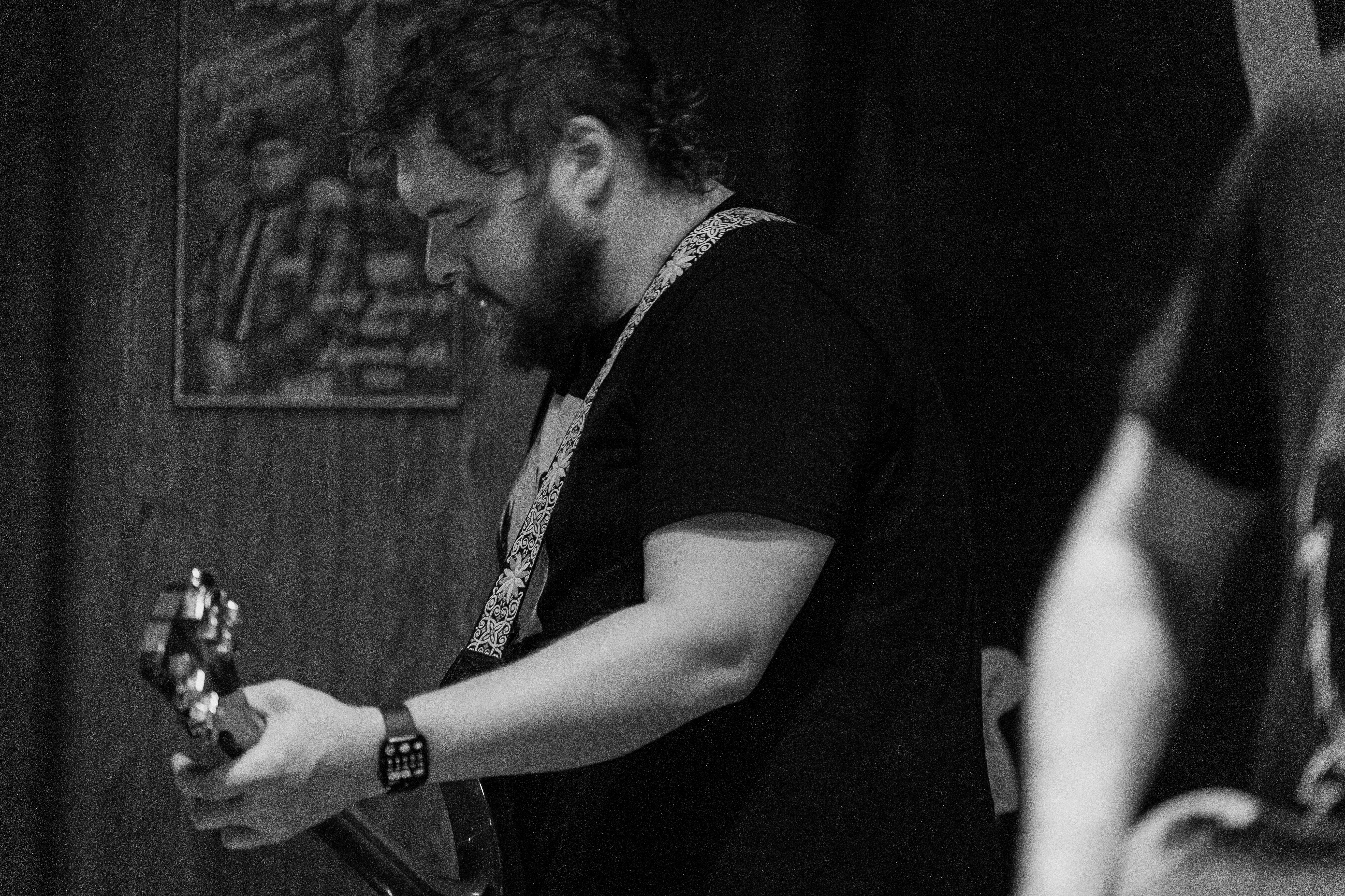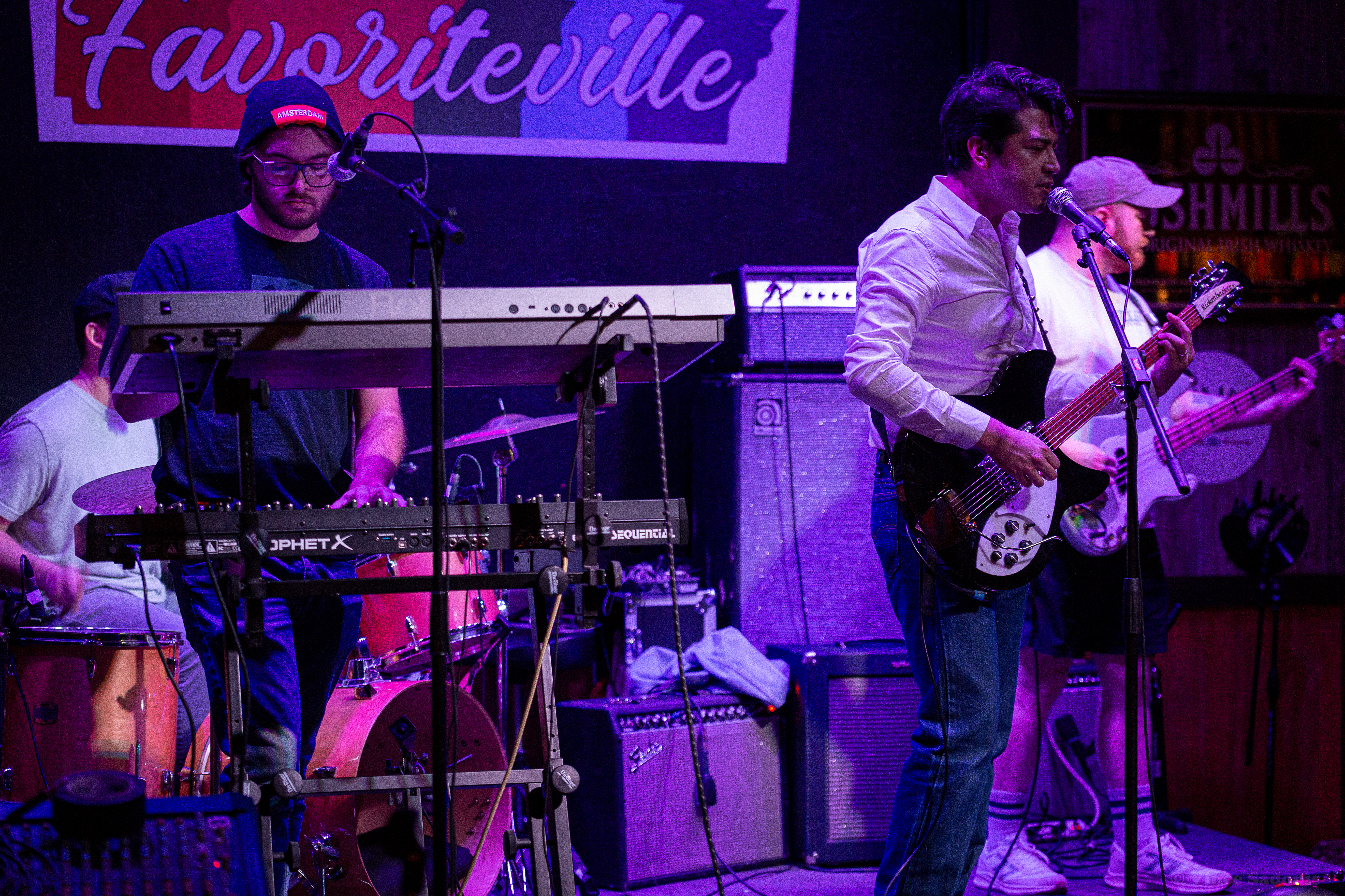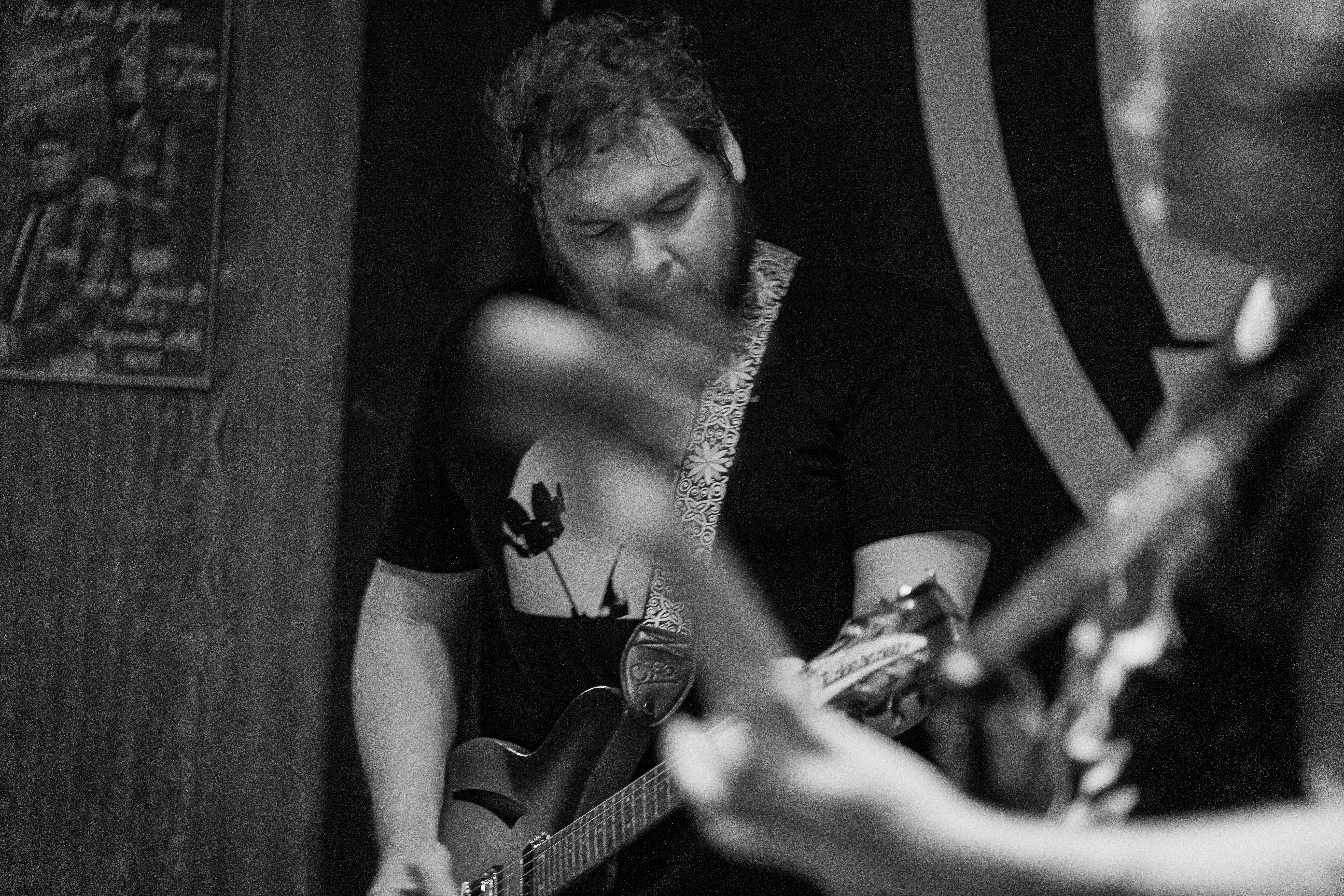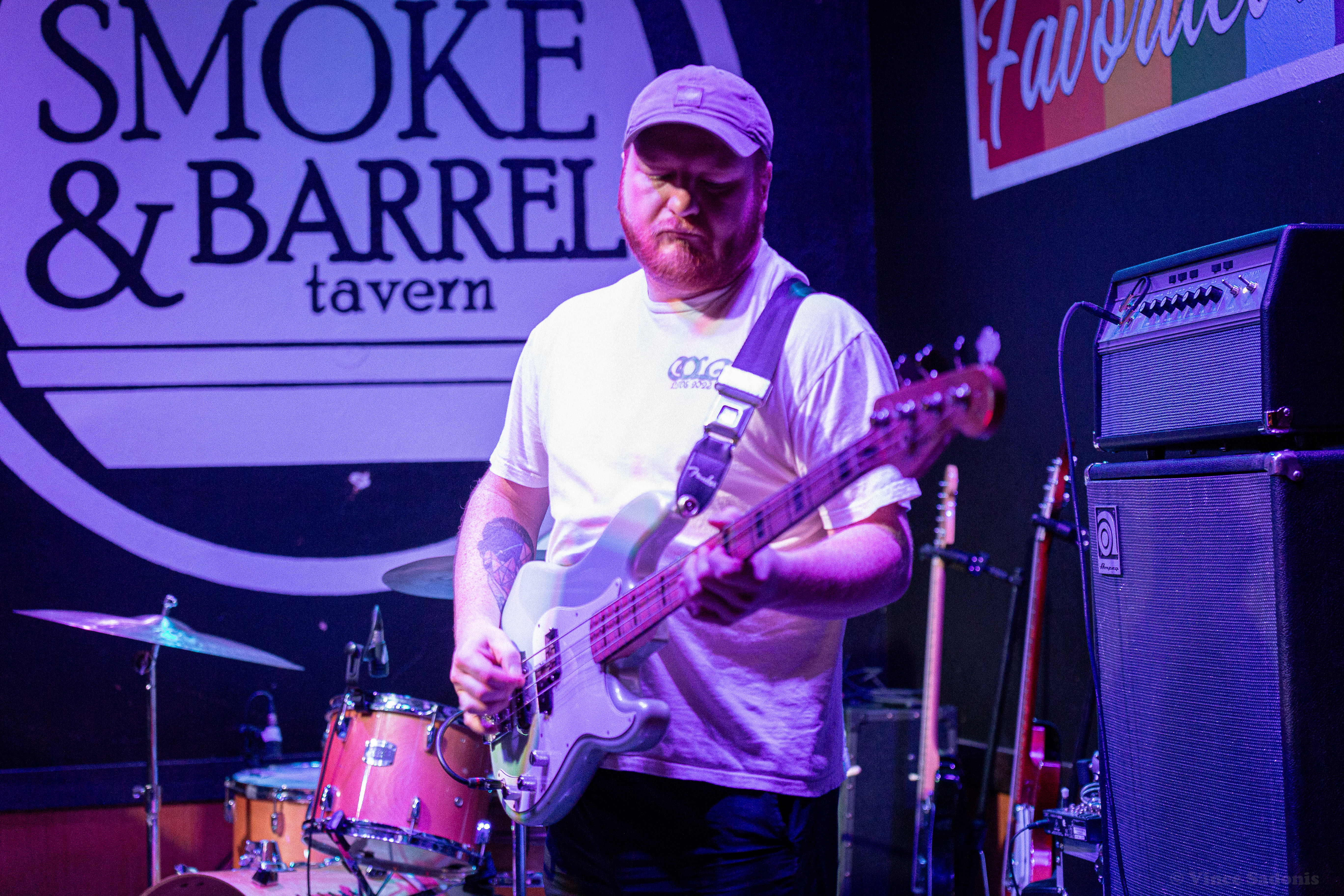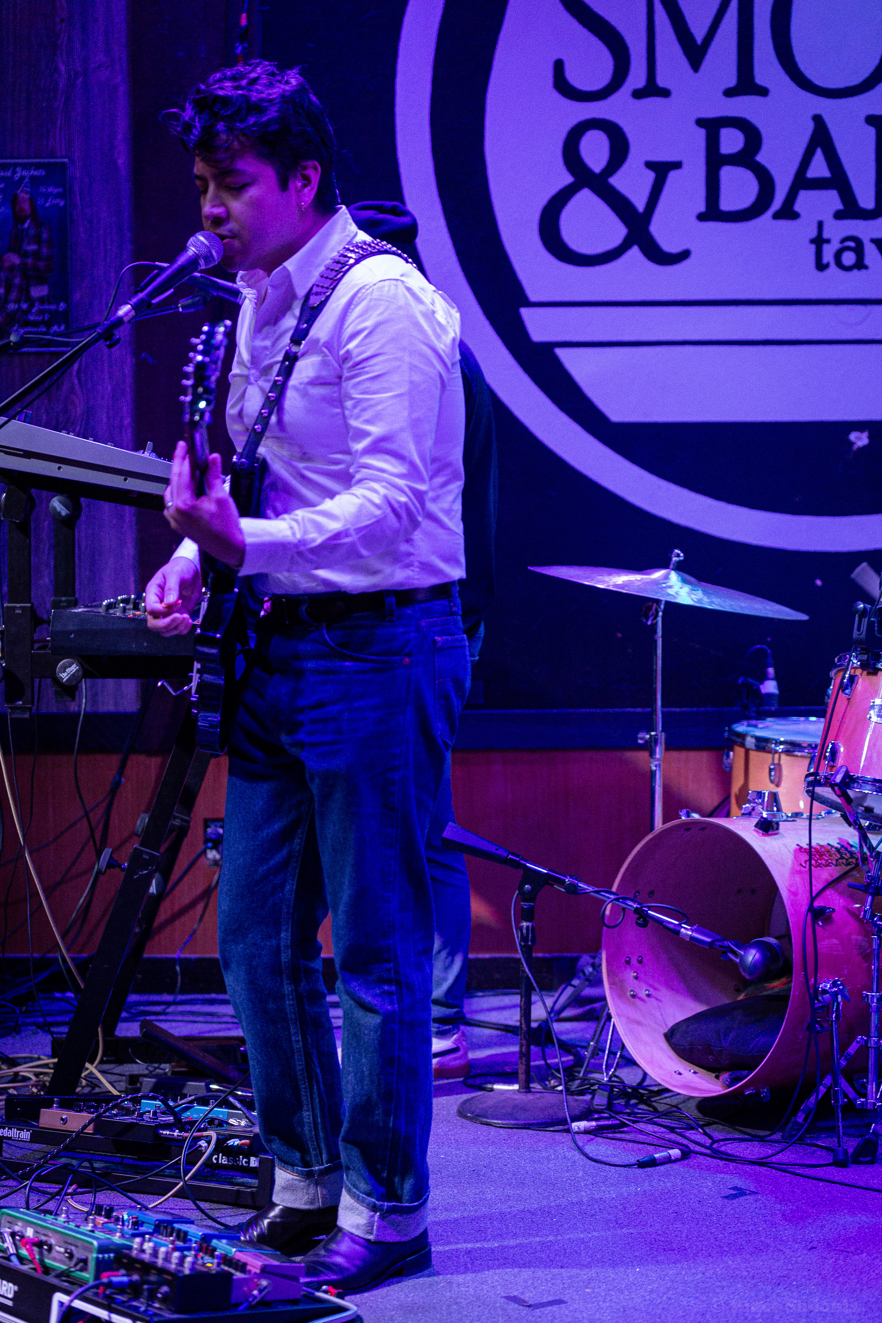 Unwed Sailor made their return to Smoke & Barrel in Fayetteville, AR for the second time these year, see their May visit here. This time around they had two local openers, Judason Void and Olympics on the bill. Hailing from Fayetteville, AR Judson Void is described as a shoegaze indie rock band, however for this show it was just singer Skylar Johnson on acoustic guitar and kick drum. Without the full band, Judason Void was a very mellow, relaxing set to listen to. Most of the crowd was sitting and drinking while Skylar’s music soothed everyone. Judging by past performances online, this version of Judason Void has been playing around Arkansas and the surrounding states for some time. Regardless of the version you see live, it is guaranteed you will enjoy the music Judason Void presents.